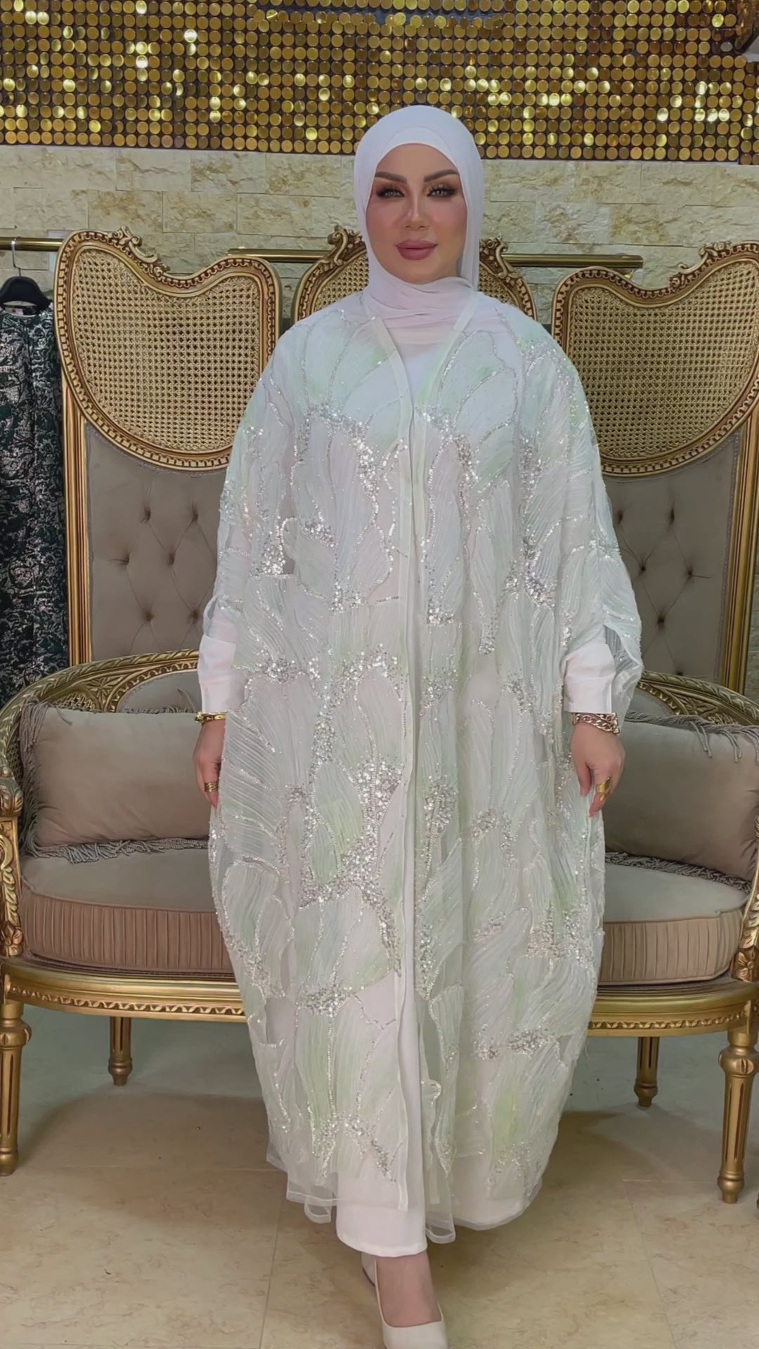 قفطان كاب أورجانزا تطريز فري سايز يناسب ٧٠ك إلى ١٠٠ك