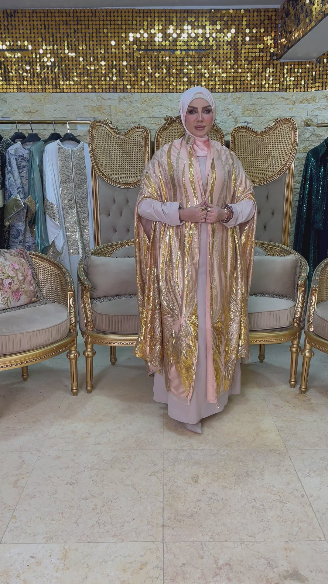 قفطان كاب أورجانزا تطريز ببطانه حرير أرماني فري سايز يناسب ٧٠ك إلى ١٠٠ك