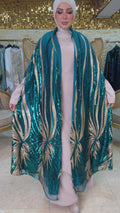 قفطان كاب أورجانزا تطريز ببطانه حرير أرماني فري سايز يناسب ٧٠ك إلى ١٠٠ك