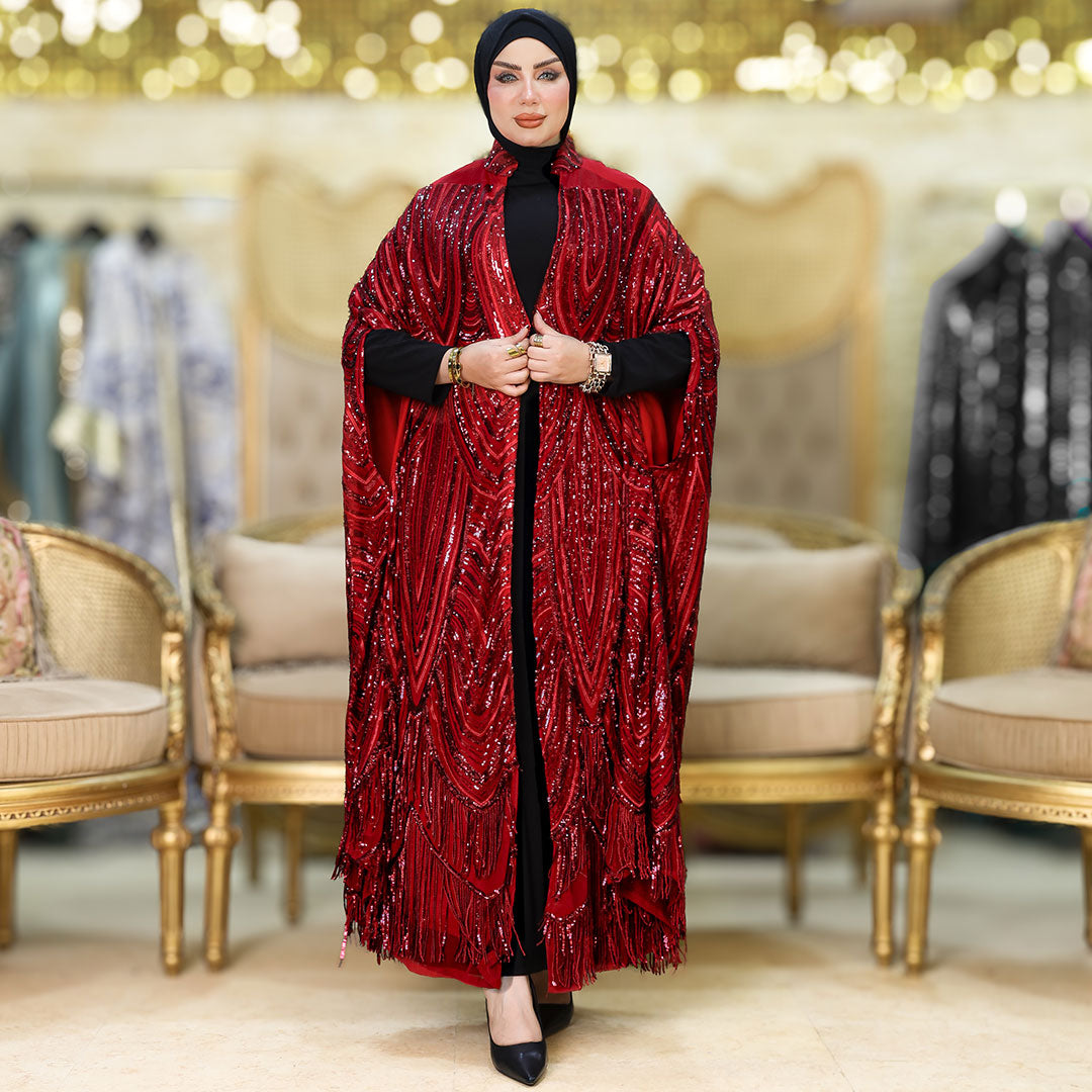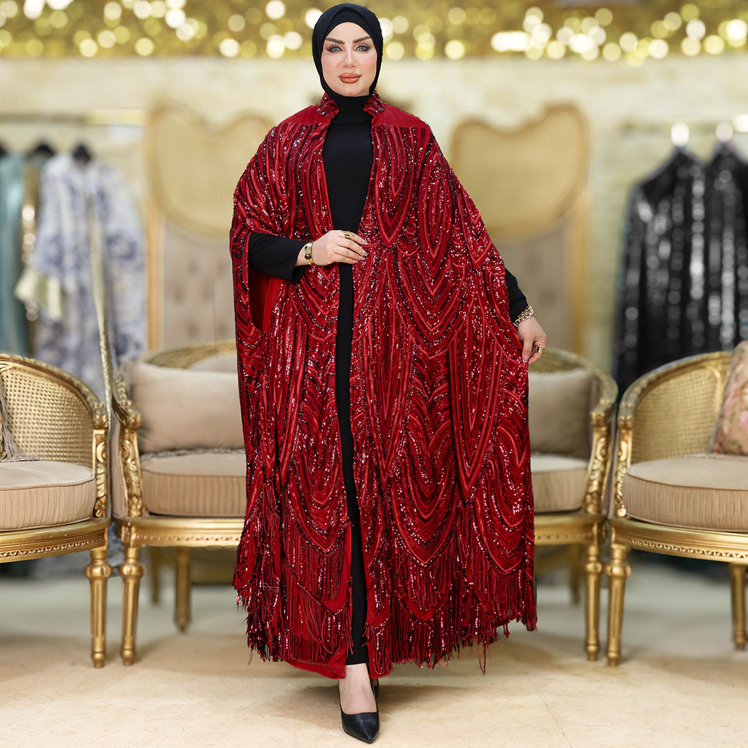 قفطان كاب أورجانزا تطريز ببطانه حرير أرماني فري سايز يناسب ٧٠ك إلى ١٠٠ك