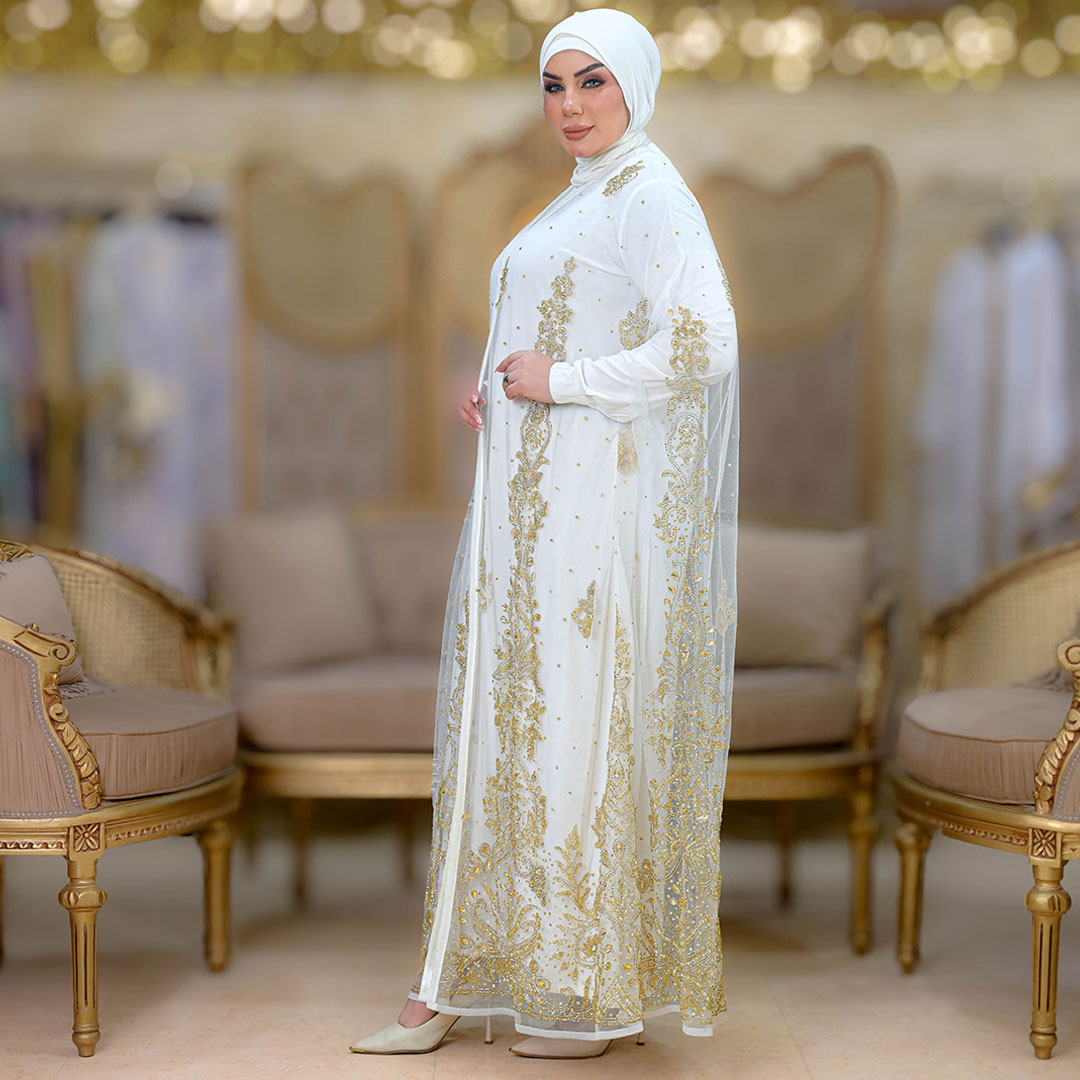 قفطان كاب أورجانزا تطريز فري سايز يناسب ٧٠ك إلى ١٠٠ك