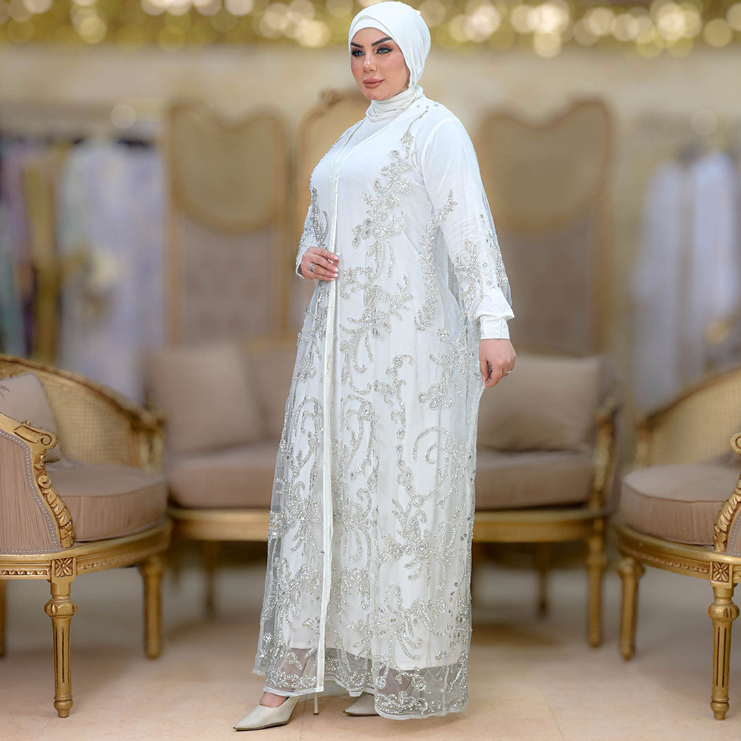 قفطان كاب أورجانزا تطريز فري سايز يناسب ٧٠ك إلى ١٠٠ك