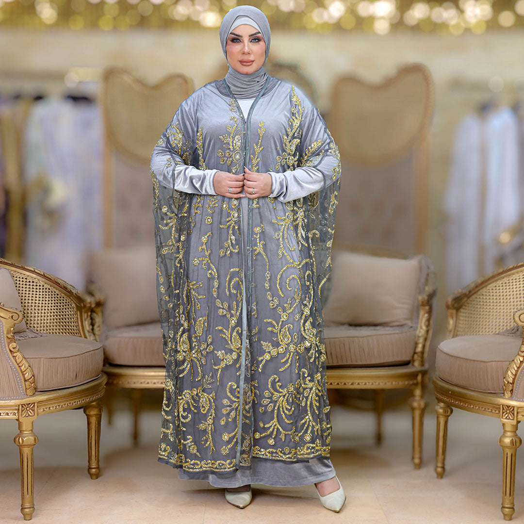 قفطان كاب أورجانزا تطريز فري سايز يناسب ٧٠ك إلى ١٠٠ك