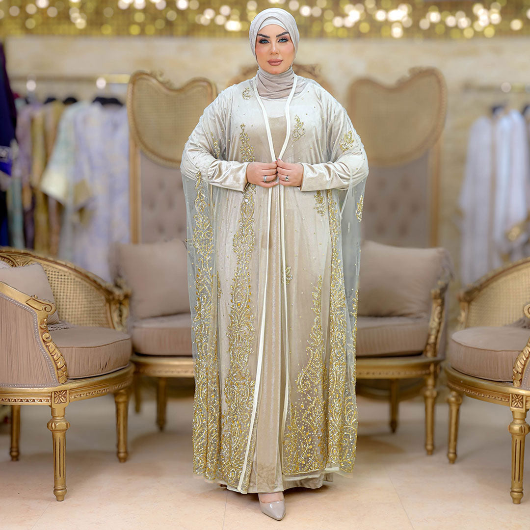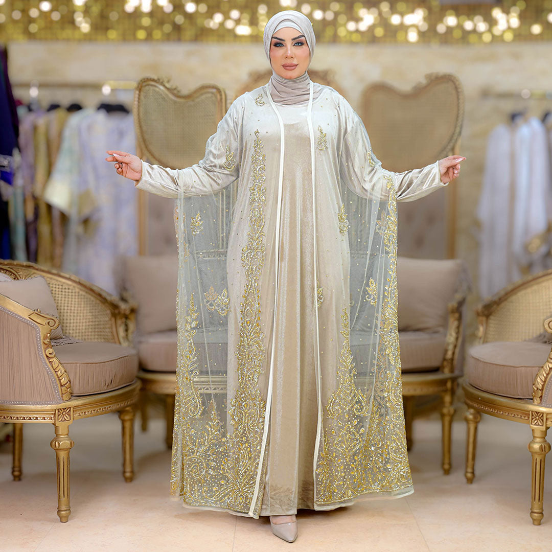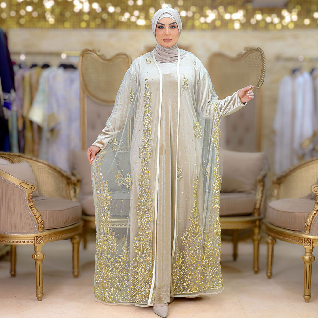 قفطان كاب أورجانزا تطريز فري سايز يناسب ٧٠ك إلى ١٠٠ك