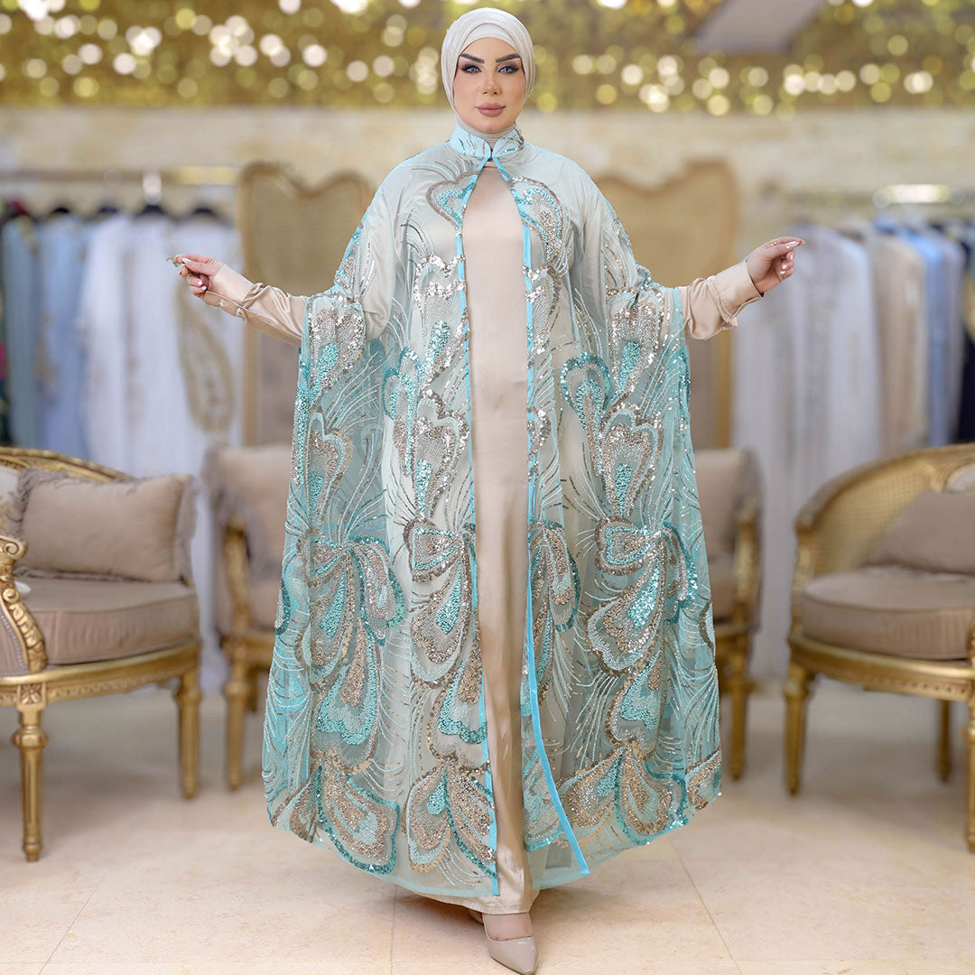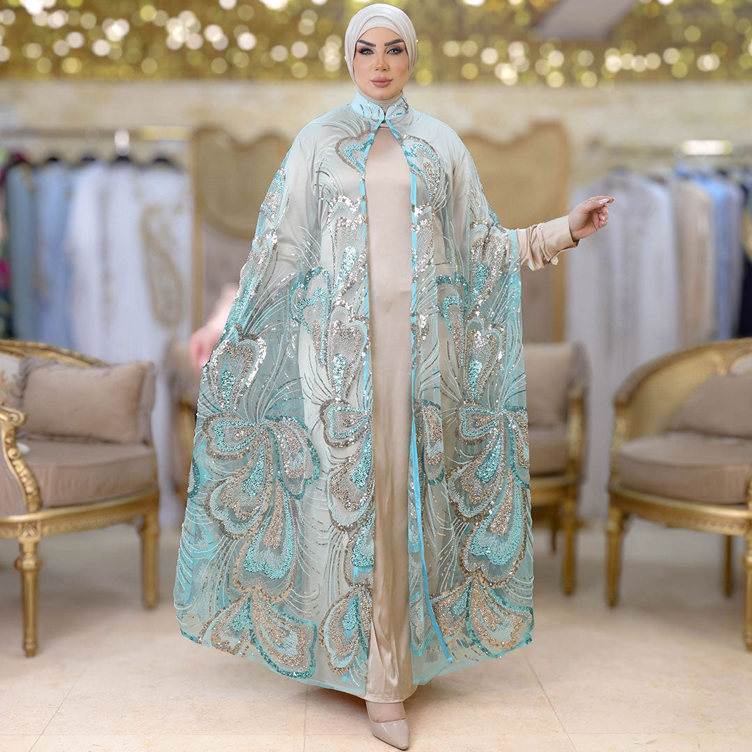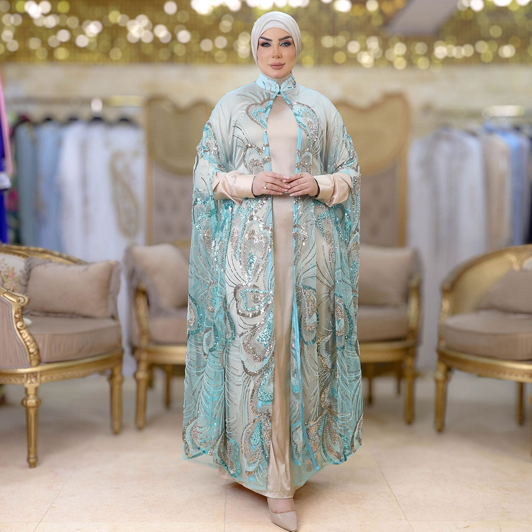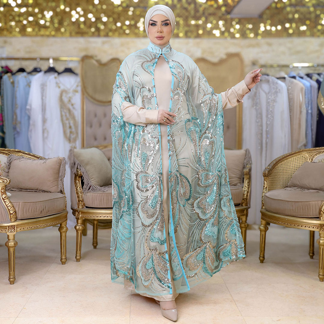 قفطان كاب أورجانزا تطريز فري سايز يناسب ٧٠ك إلى ١٠٠ك