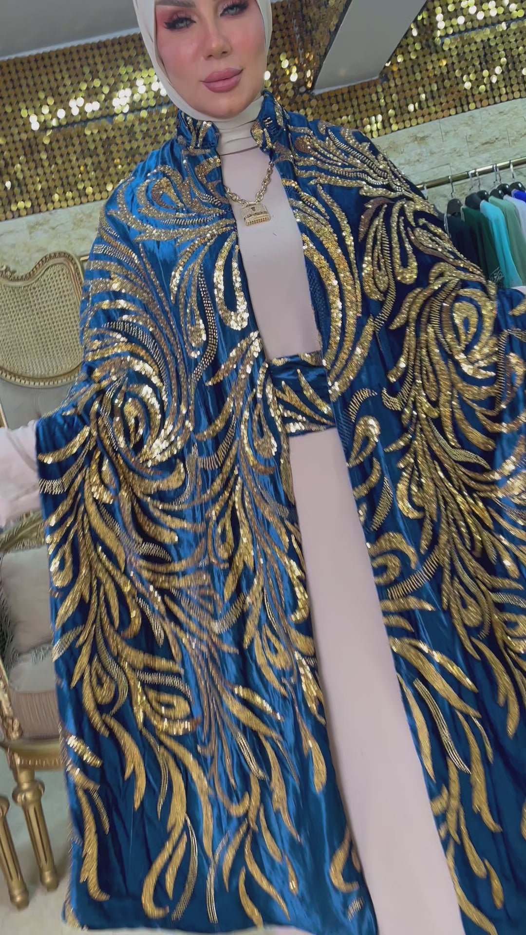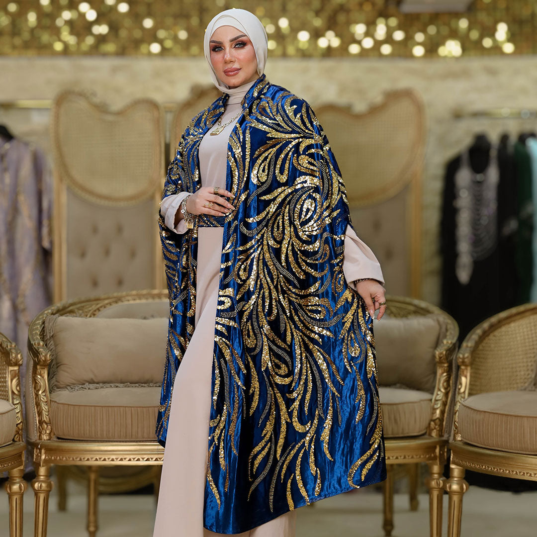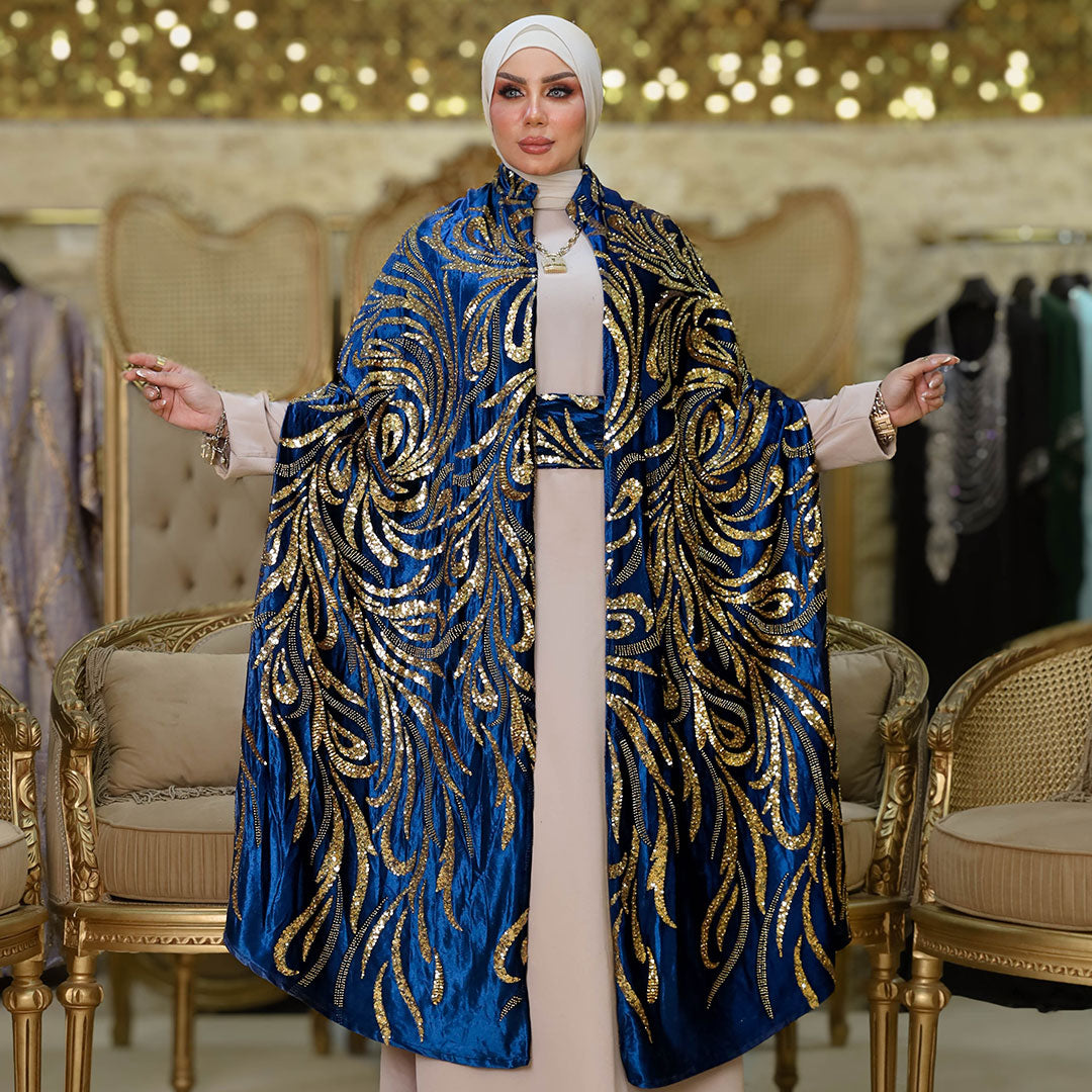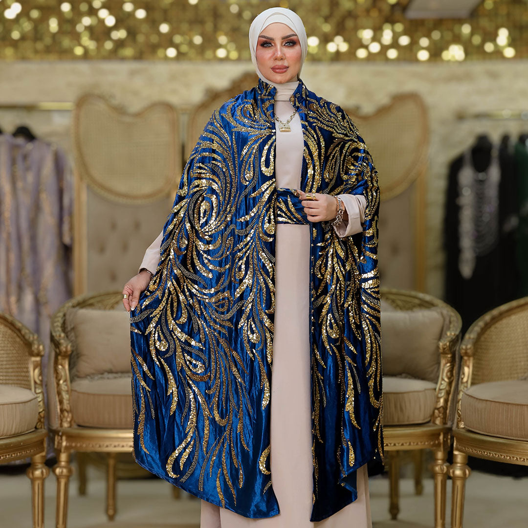 قفطان كاب شمواه تطريز كامل قطعتين مع بيزك حرير ستان أرماني و حزام.