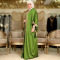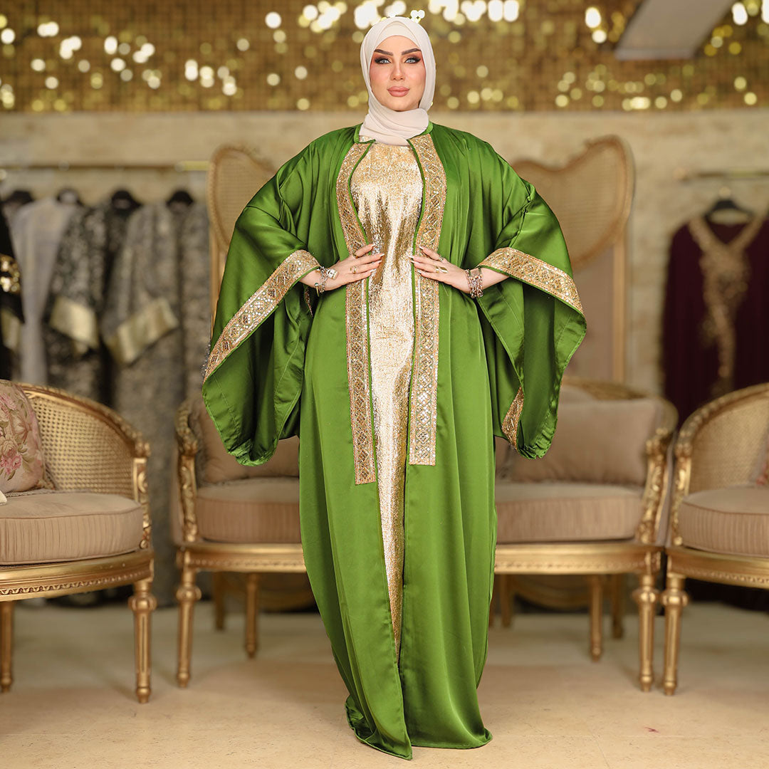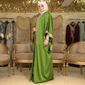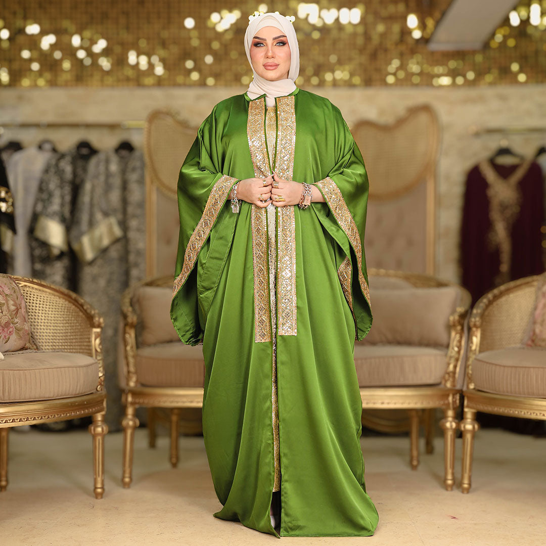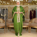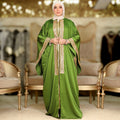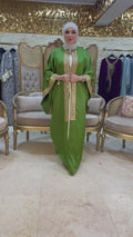 القفطان : من الحرير الأرماني و مطرز بشريط تطريز هندي فري سايز يناسب ٧٠ك إلى ١٣٠ك