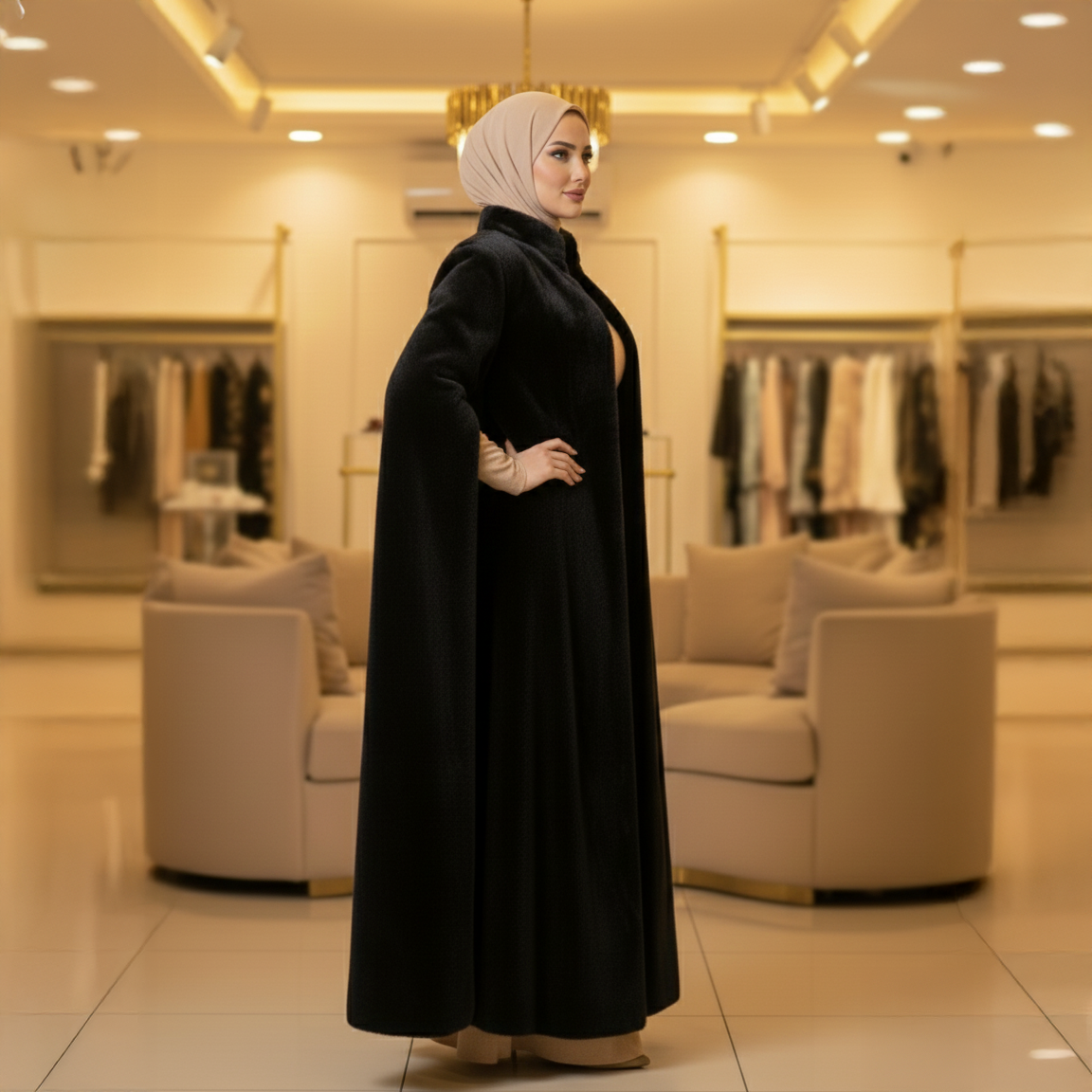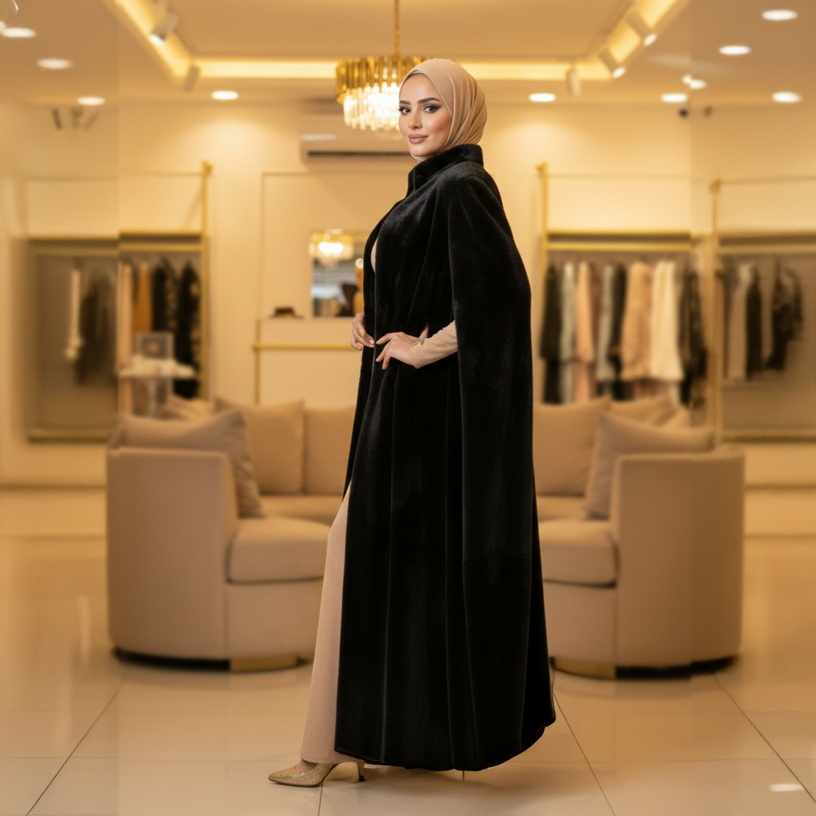 قفطان فرو من مصنعنا بدبي+ حزام فري سايز يناسب ٧٠ك إلى ١٢٠ك
