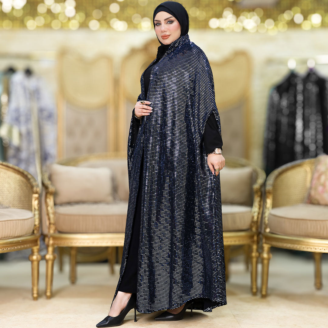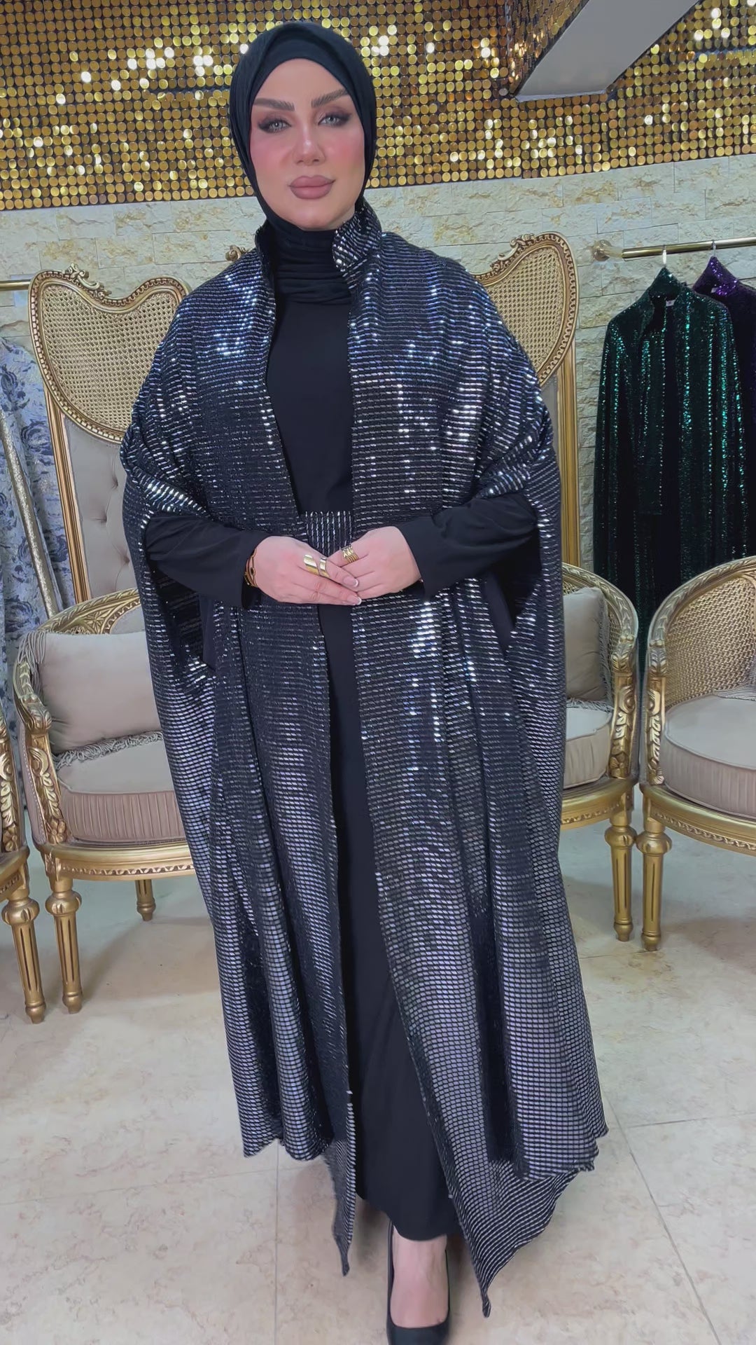 قفطان سواريه من خامة كريستال شايني مع حزام لون القفطان، فري سايز يناسب ٧٠ك إلى ١٢٠ك