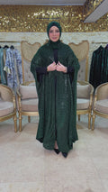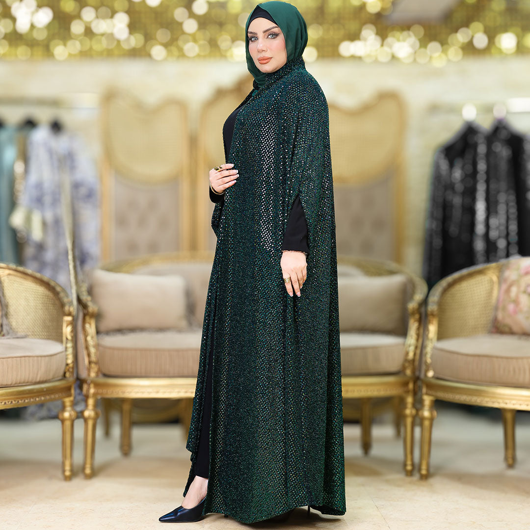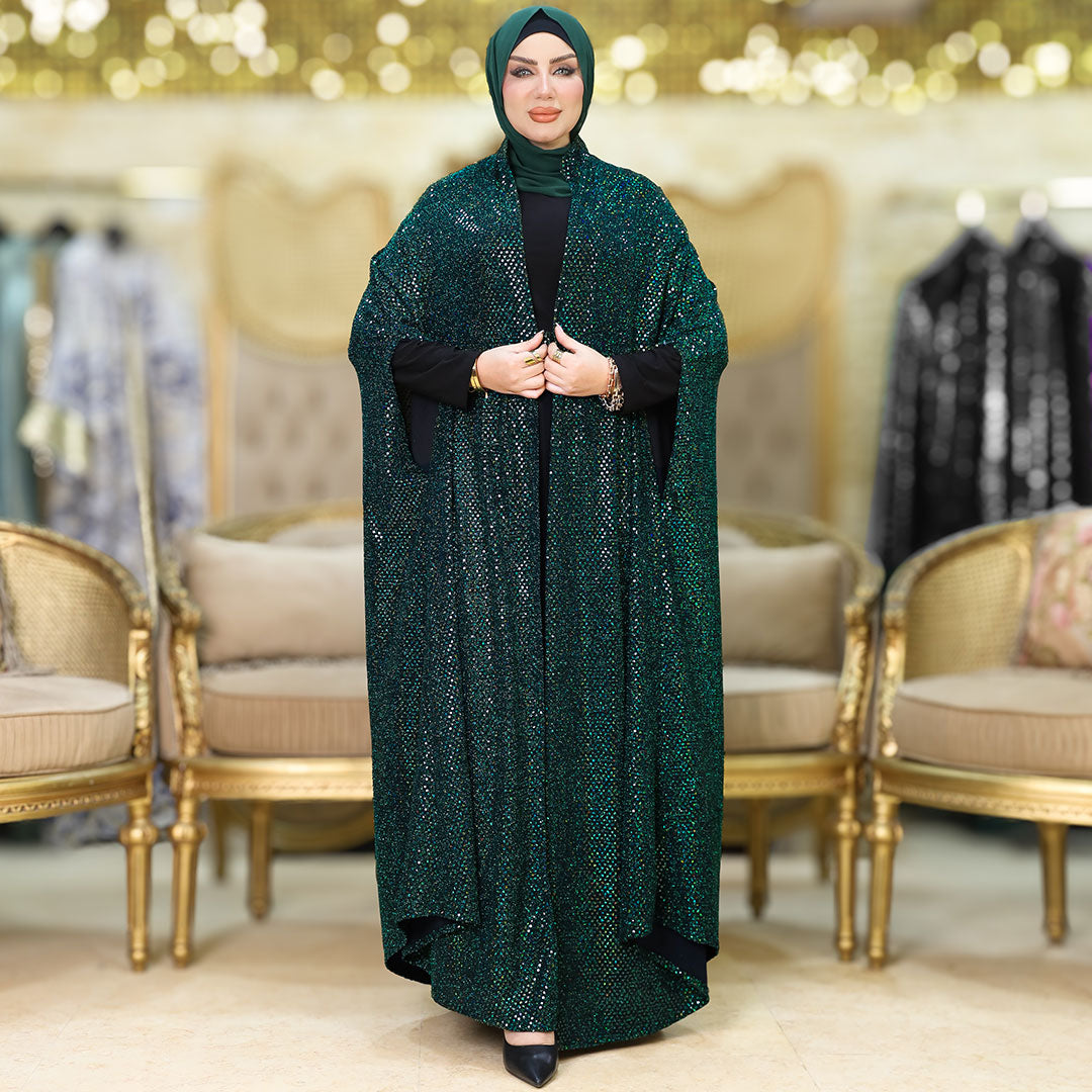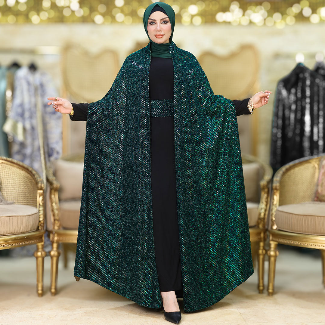 قفطان سواريه من خامة كريستال شايني مع حزام لون القفطان، فري سايز يناسب ٧٠ك إلى ١٢٠ك