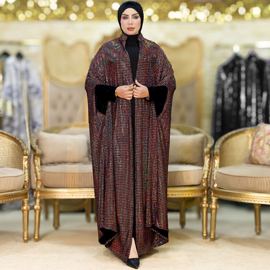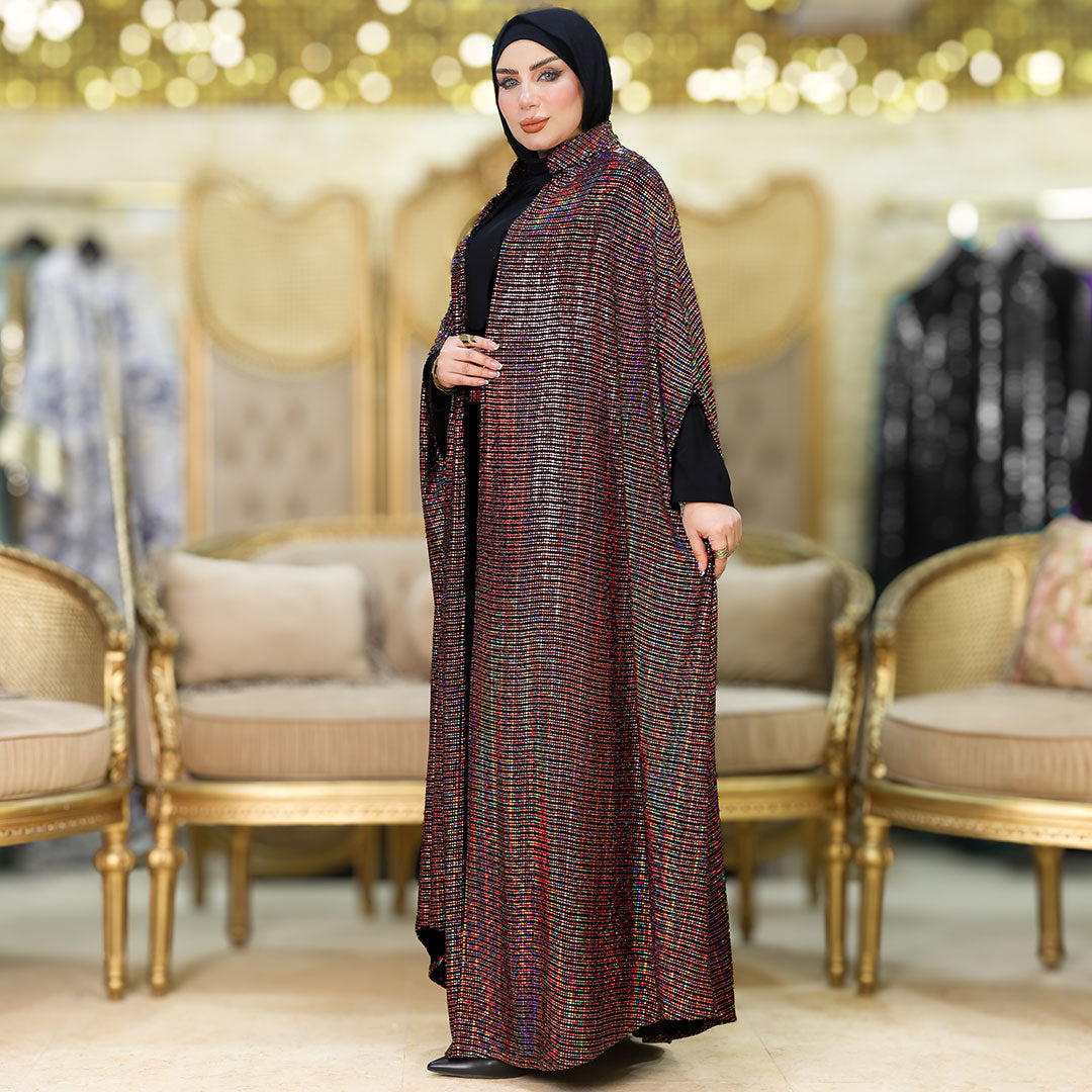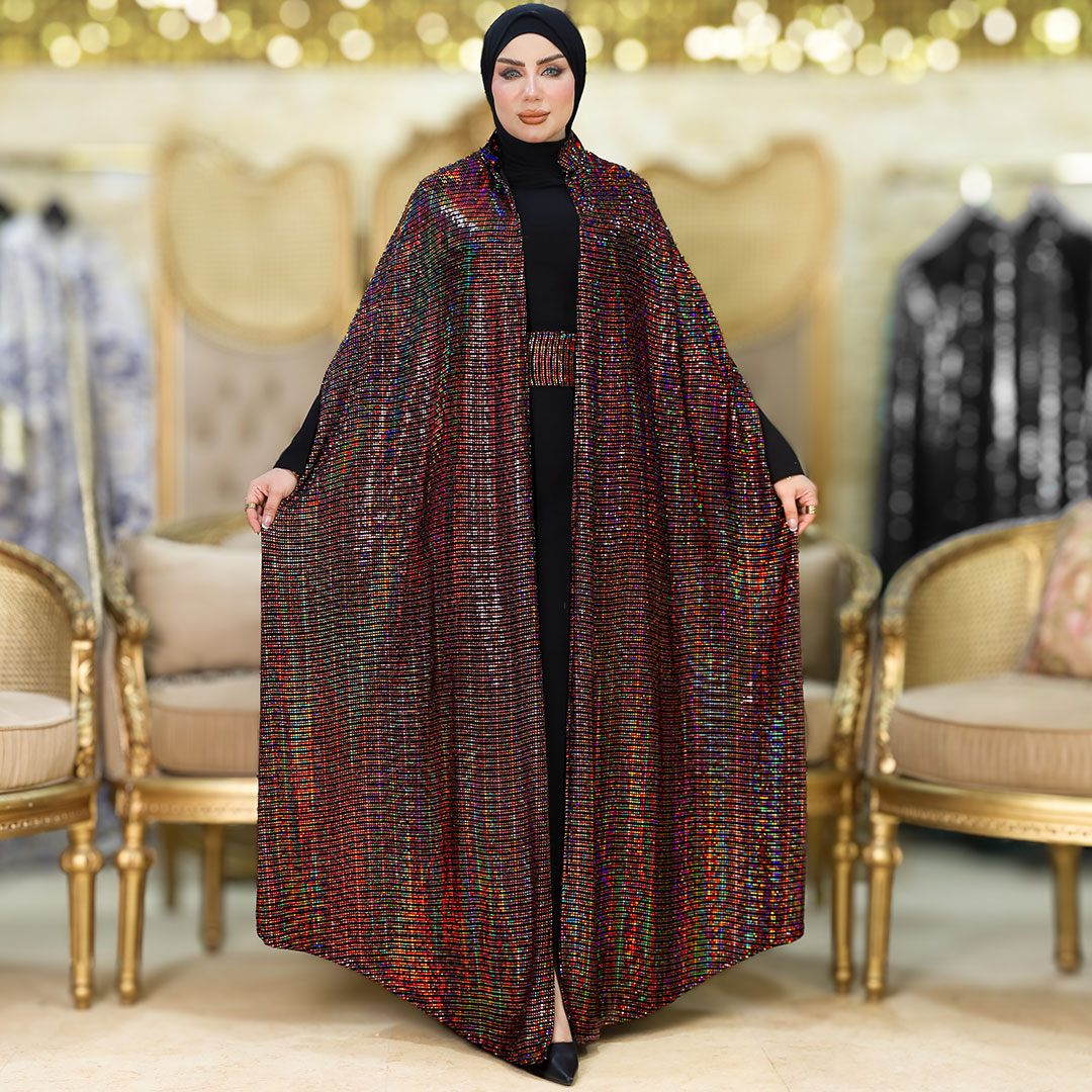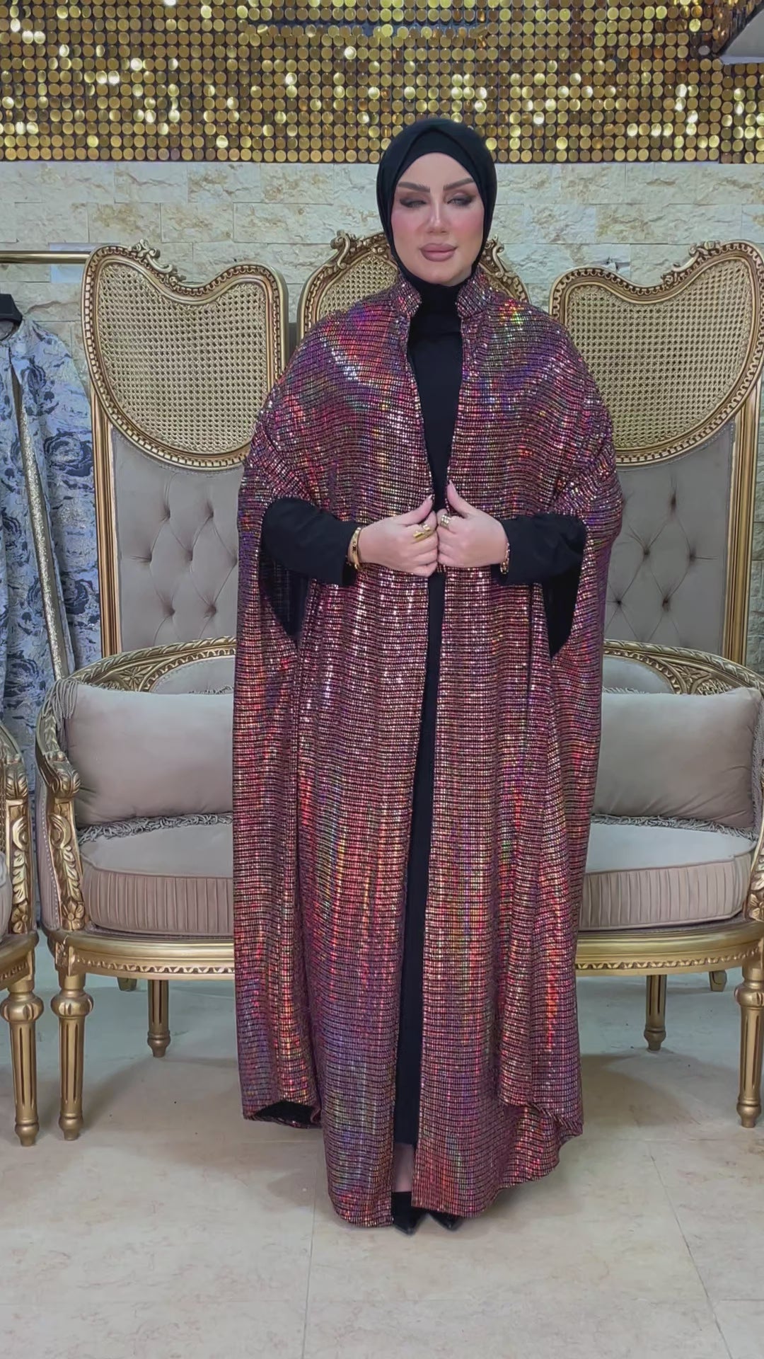 قفطان سواريه من خامة كريستال شايني مع حزام لون القفطان، فري سايز يناسب ٧٠ك إلى ١٢٠ك