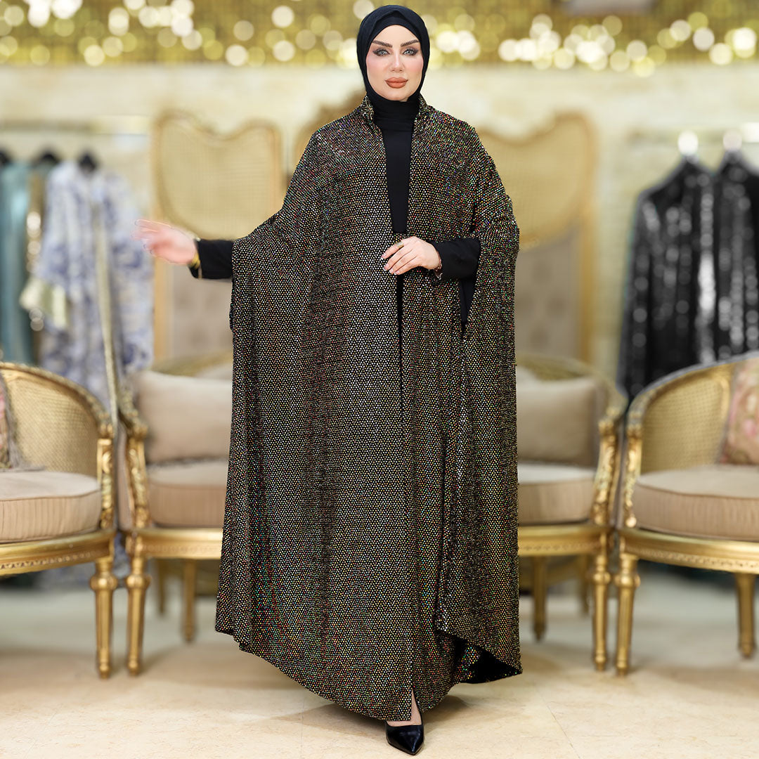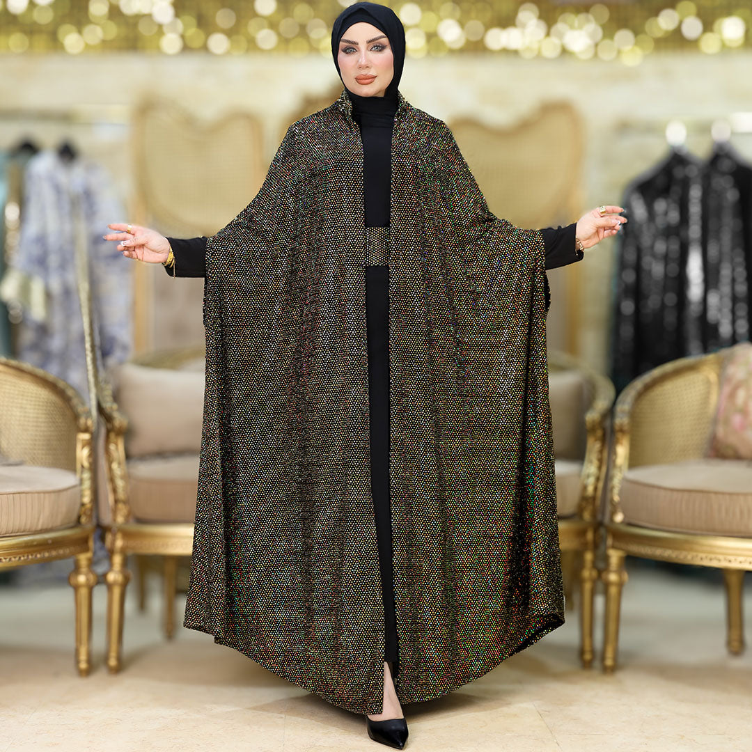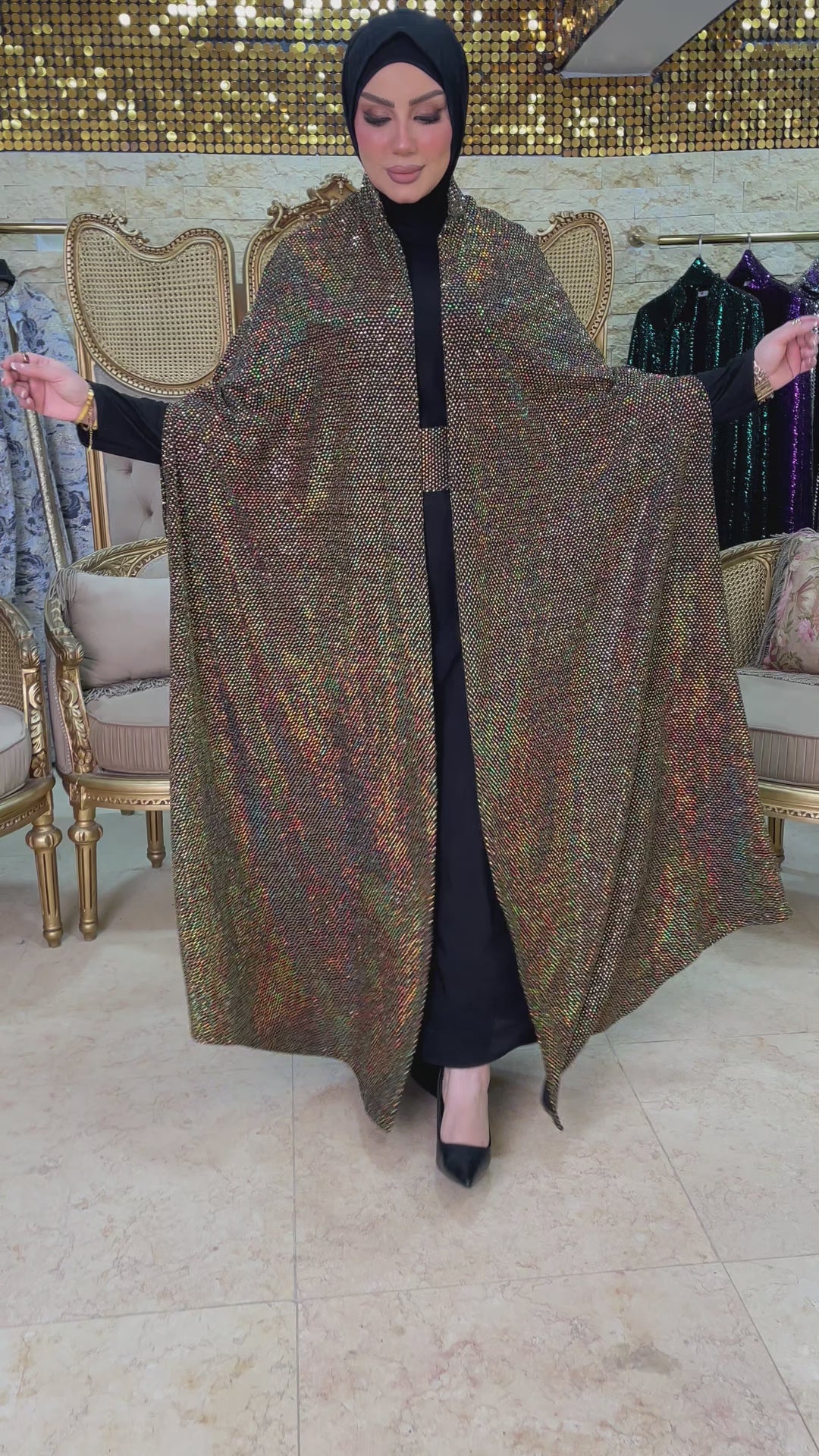 قفطان سواريه من خامة كريستال شايني مع حزام لون القفطان، فري سايز يناسب ٧٠ك إلى ١٢٠ك