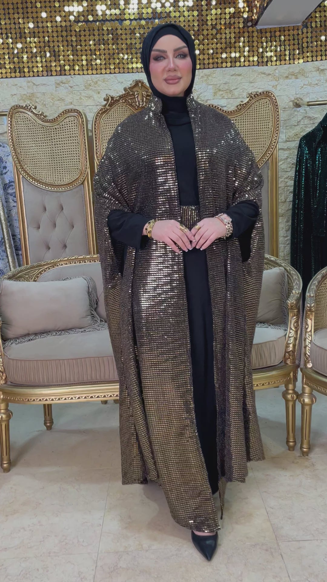 قفطان سواريه من خامة كريستال شايني مع حزام لون القفطان، فري سايز يناسب ٧٠ك إلى ١٢٠ك