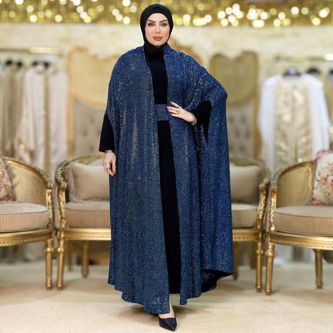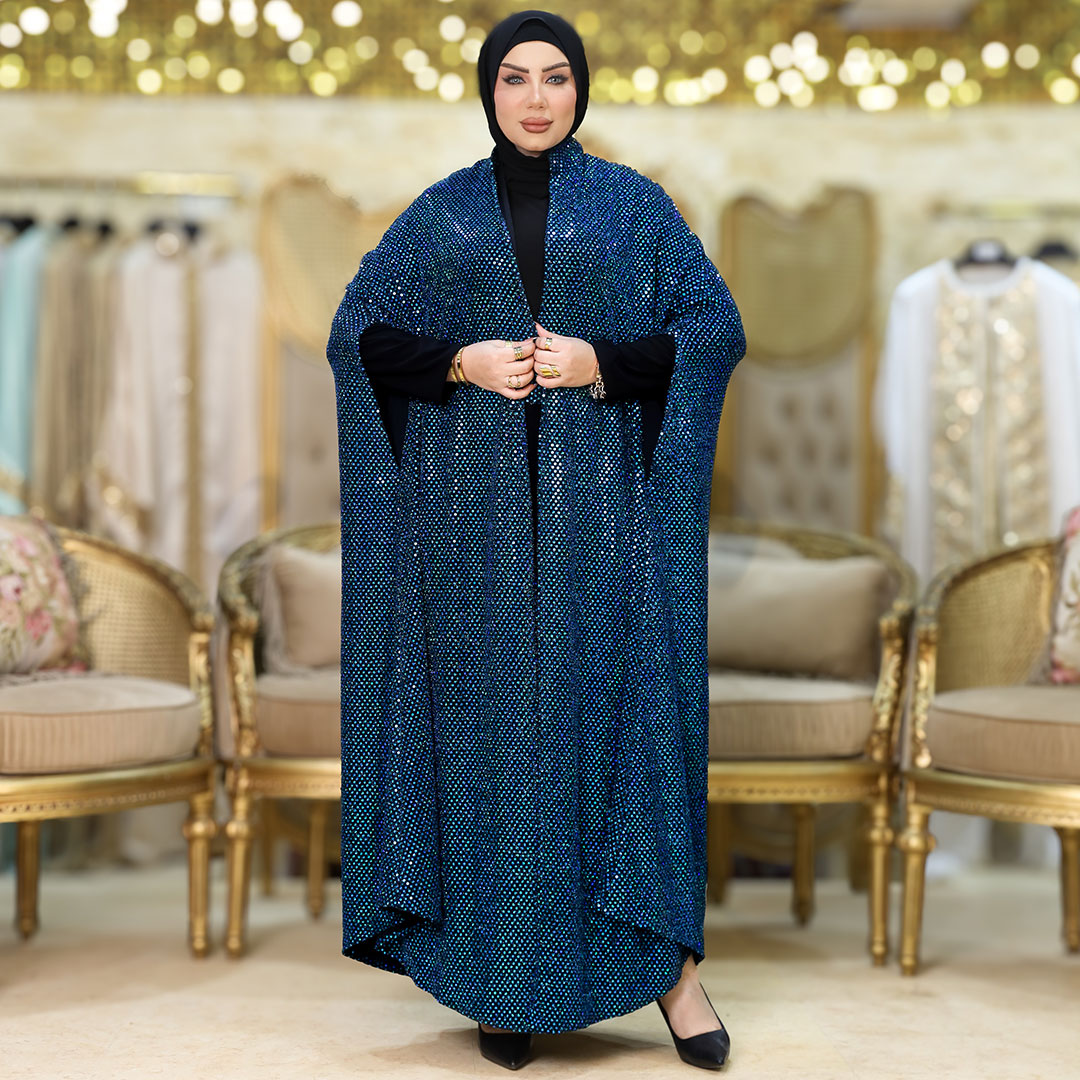 قفطان سواريه من خامة كريستال شايني مع حزام لون القفطان، فري سايز يناسب ٧٠ك إلى ١٢٠ك