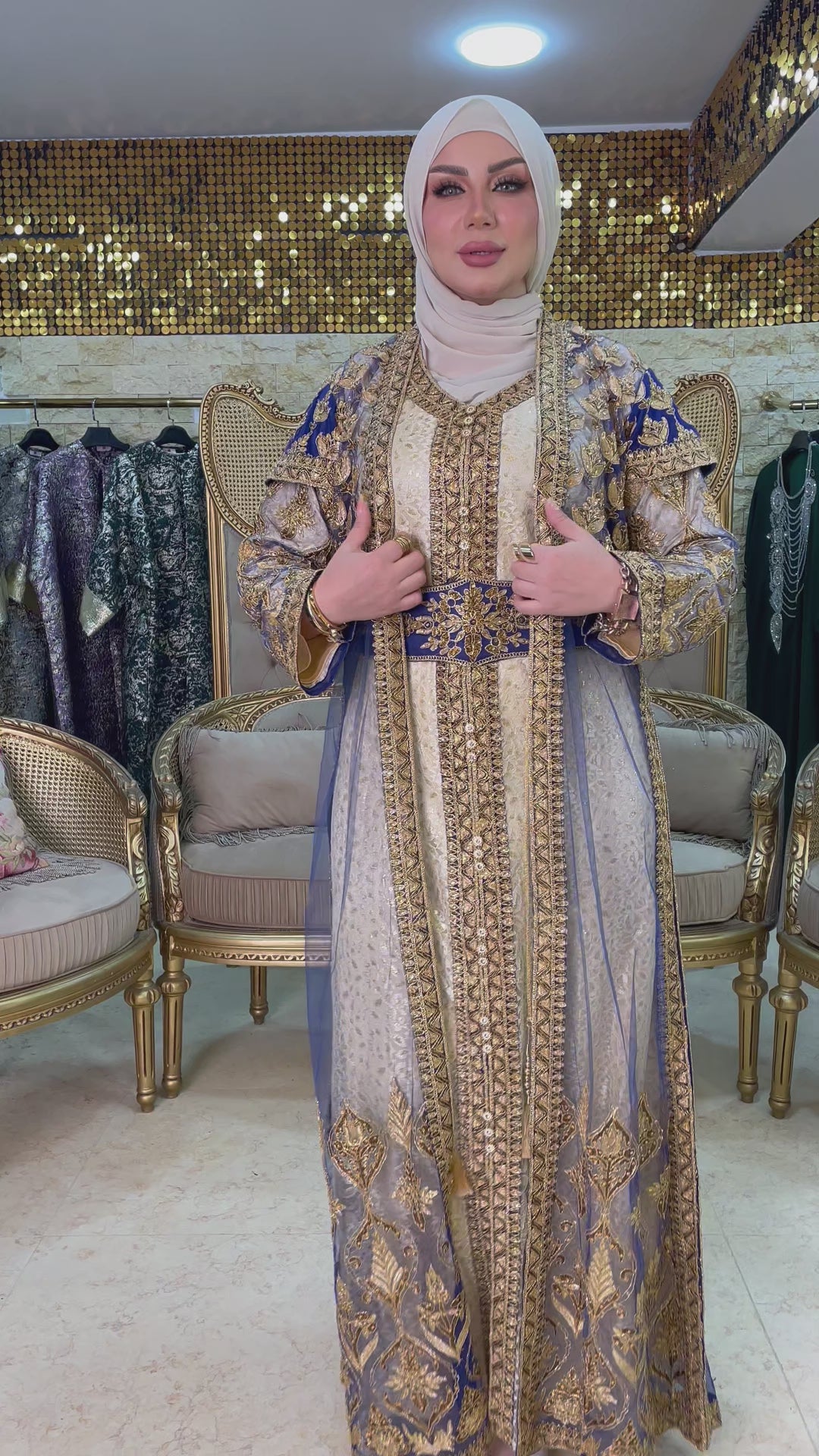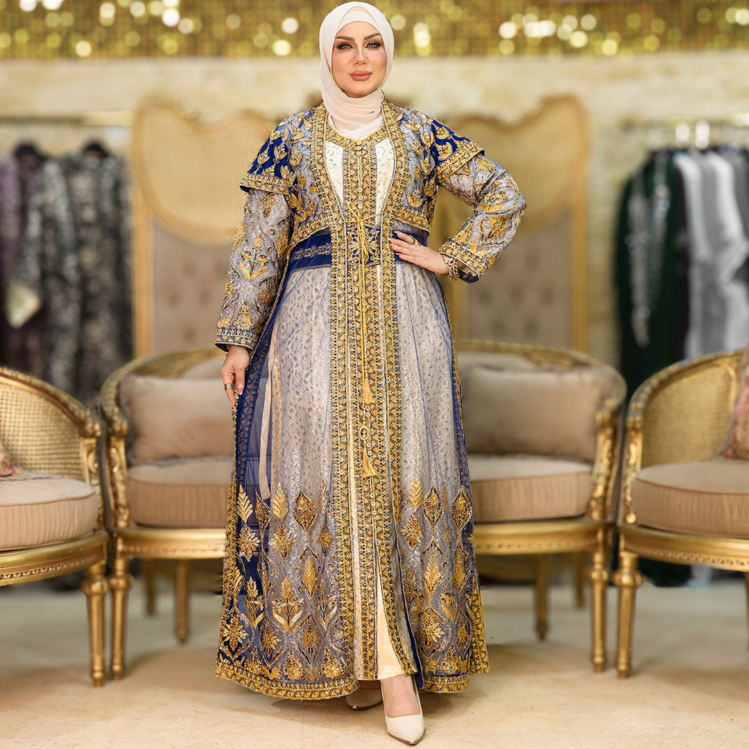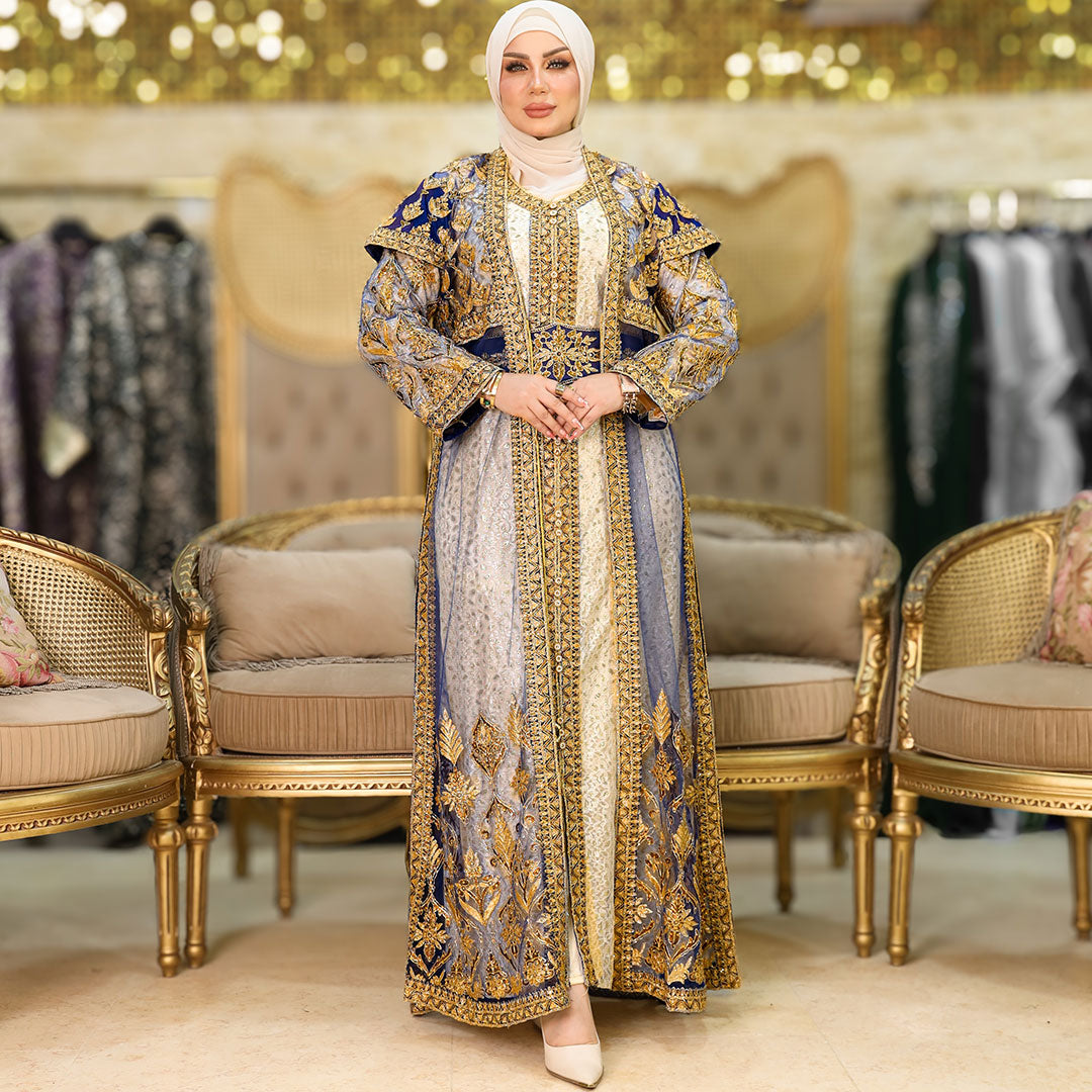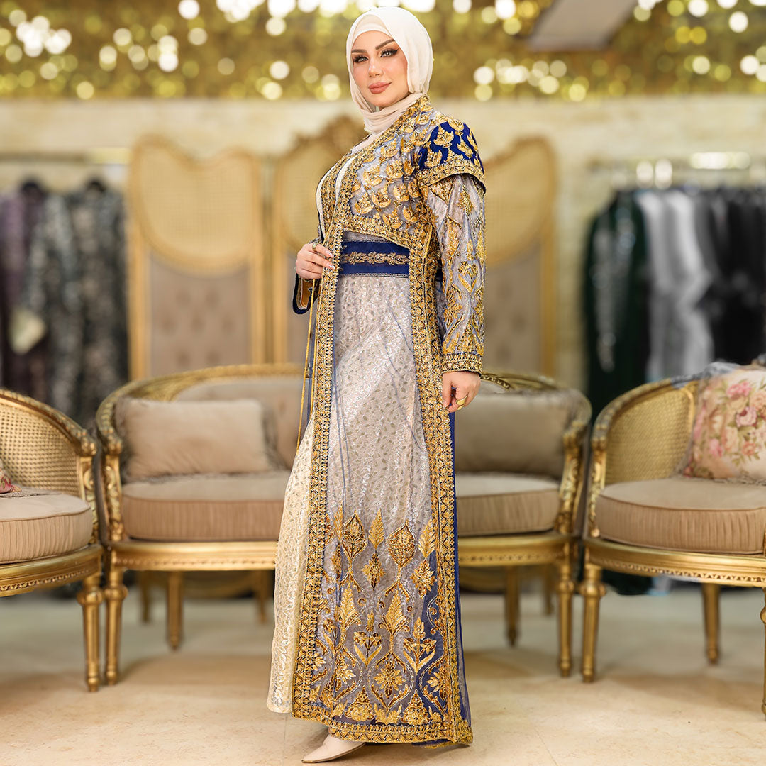 قفطان كازابلانكا تراث مغربي تطريز بالكامل فري سايز يناسب ٧٠ك إلى ١٠٠ك