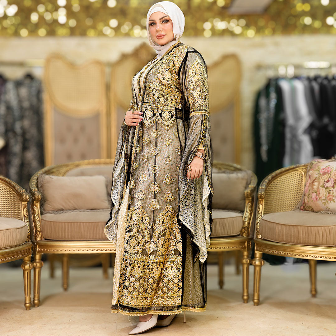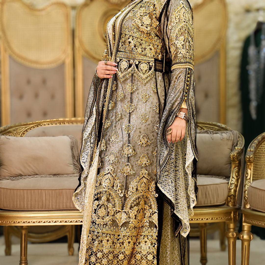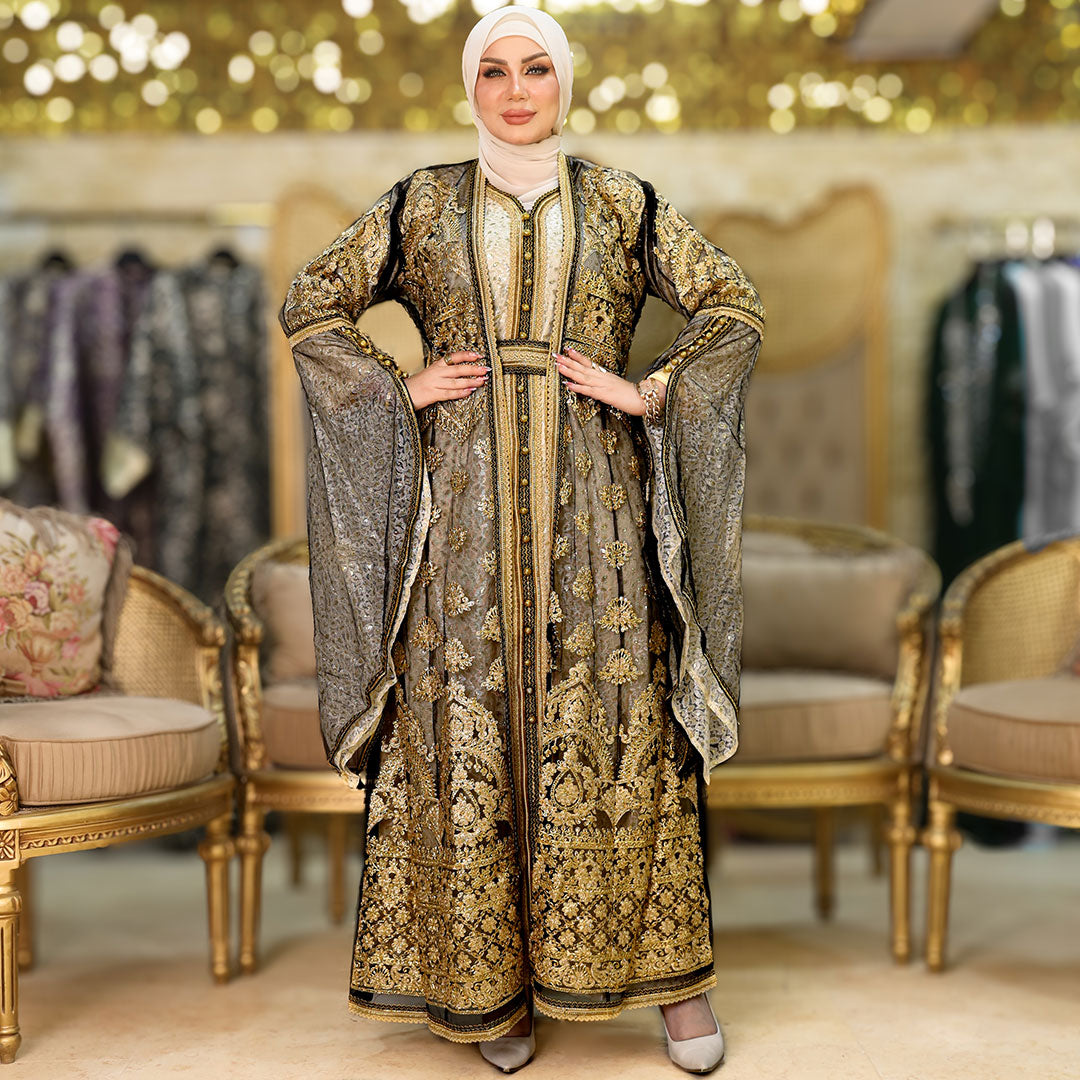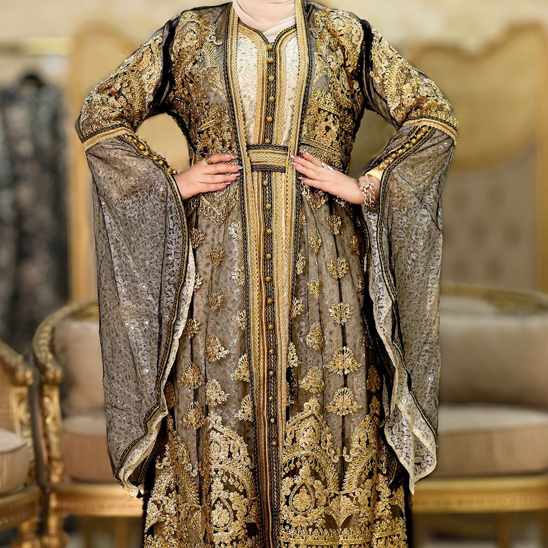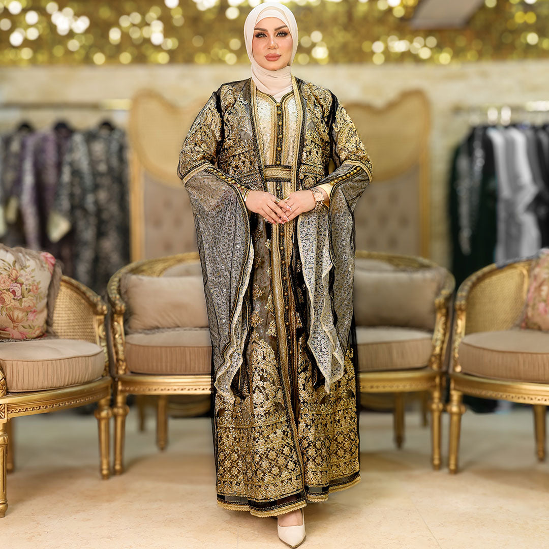 قفطان كازابلانكا تراث مغربي تطريز بالكامل فري سايز يناسب ٧٠ك إلى ١٠٠ك