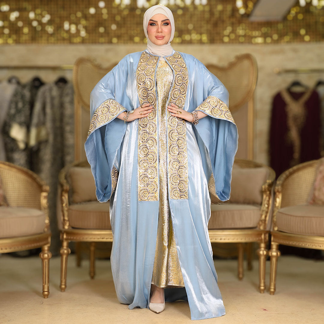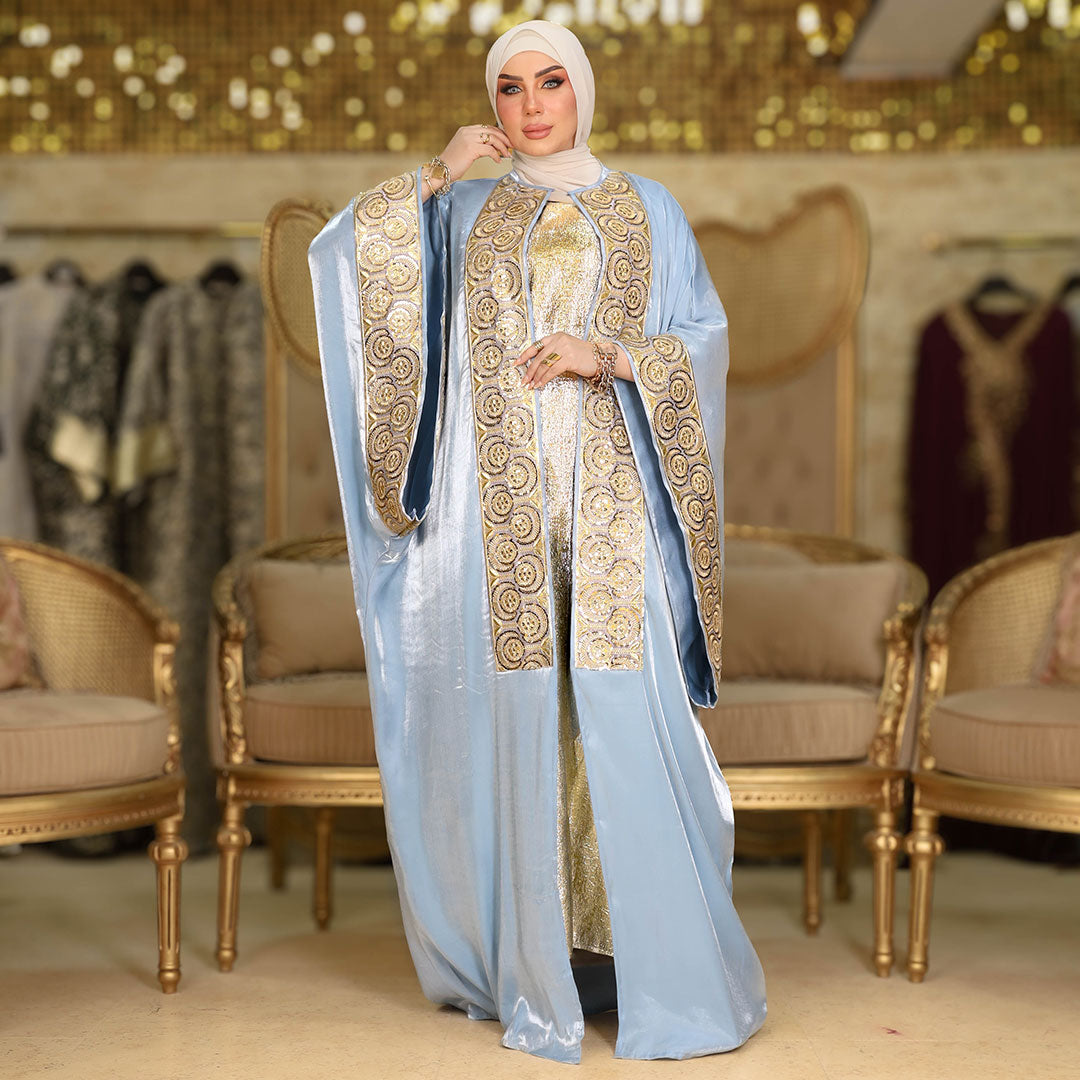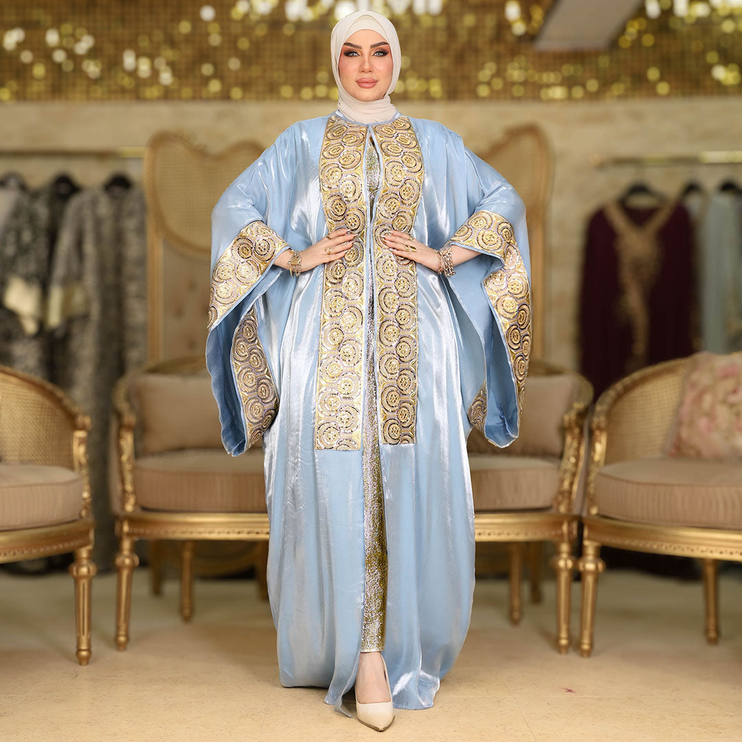 القفطان : من الأورجانزا الشيمر و مطرز بشريط تطريز هندي