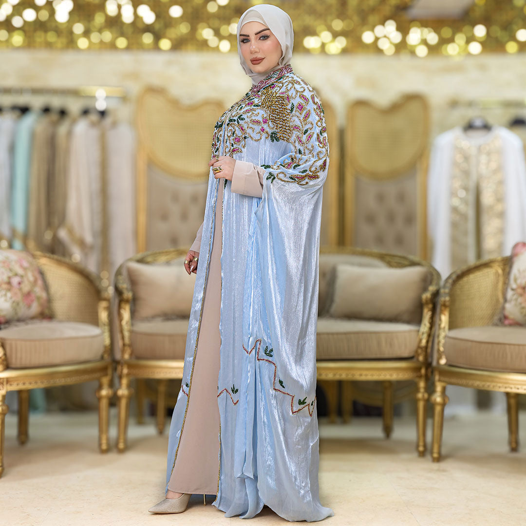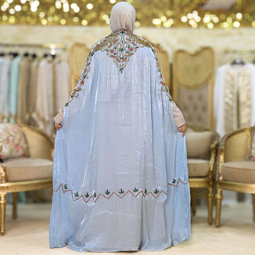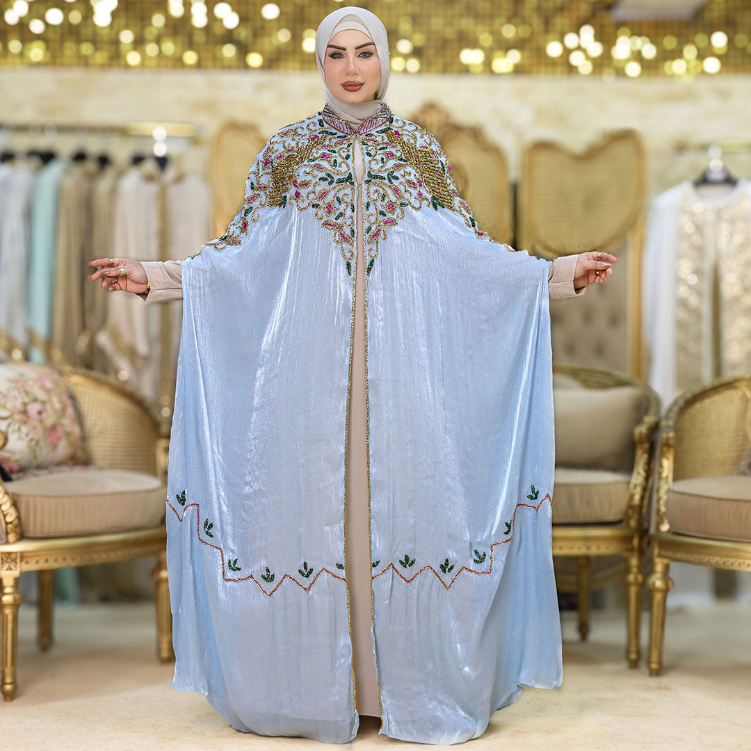 قفطان كاب هندي أورجانزا شيمر تطريز هندي فري سايز يناسب ٧٠ك إلى ١٢٠ك