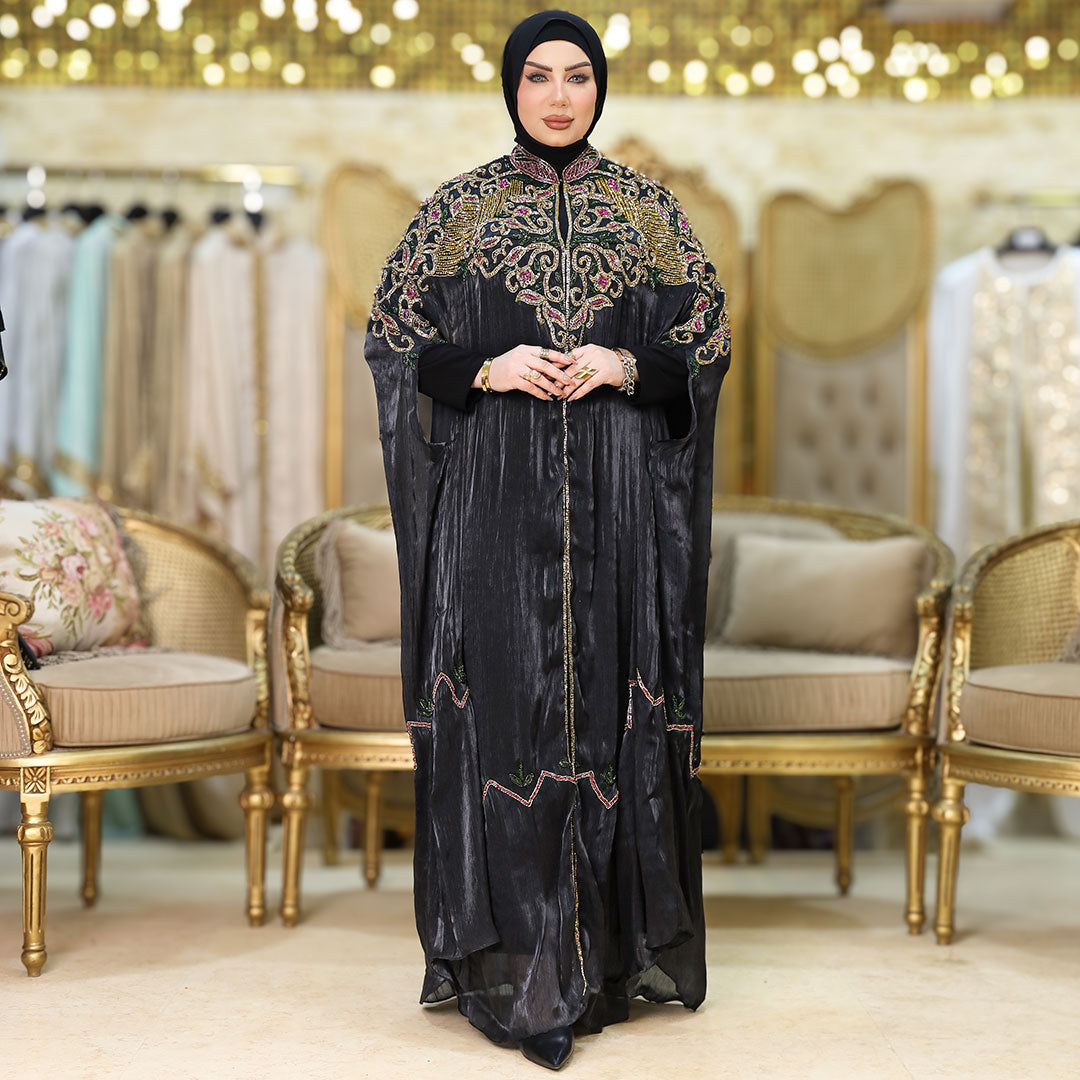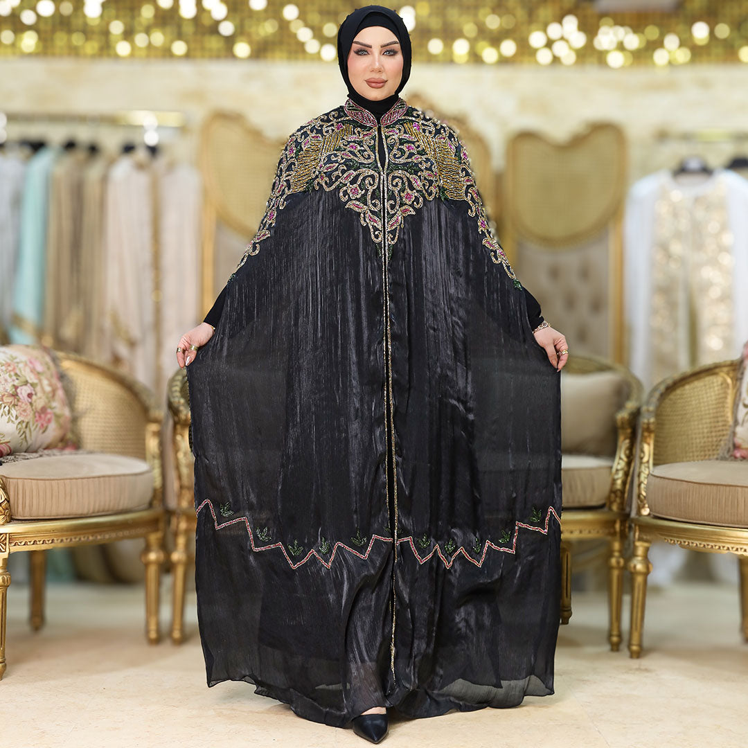قفطان كاب هندي أورجانزا شيمر تطريز هندي فري سايز يناسب ٧٠ك إلى ١٢٠ك