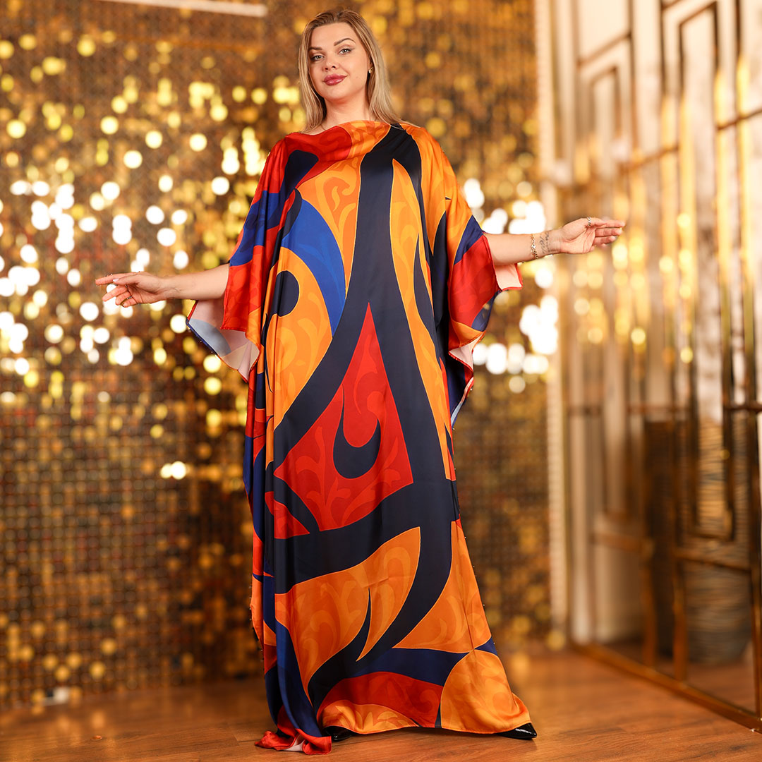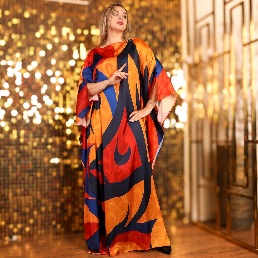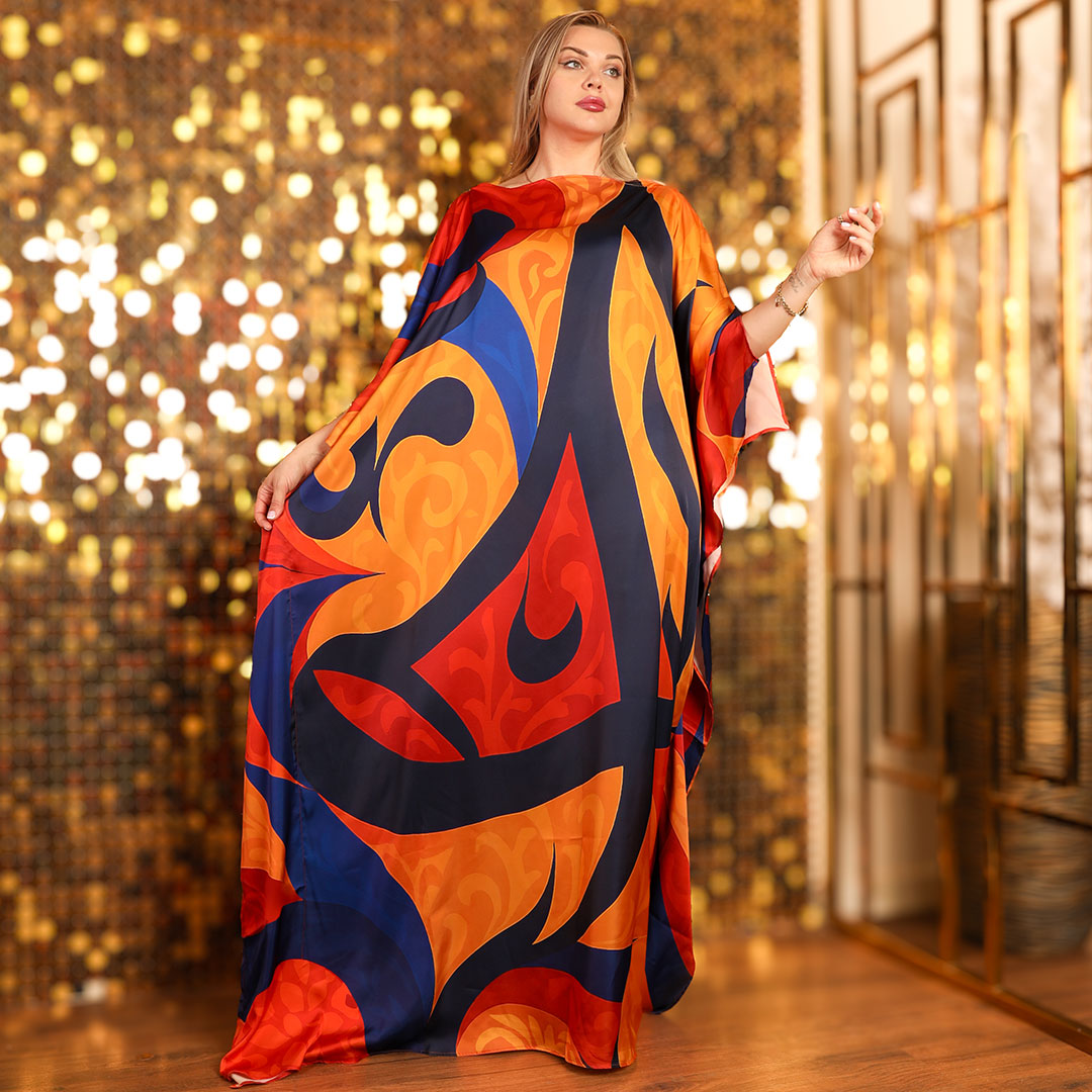 عباية حرير أرماني بترفلاي طباعة ديجيتال من تصميماتنا الخاصة فري سايز تناسب ٧٠ك إلى ١٢٠ك