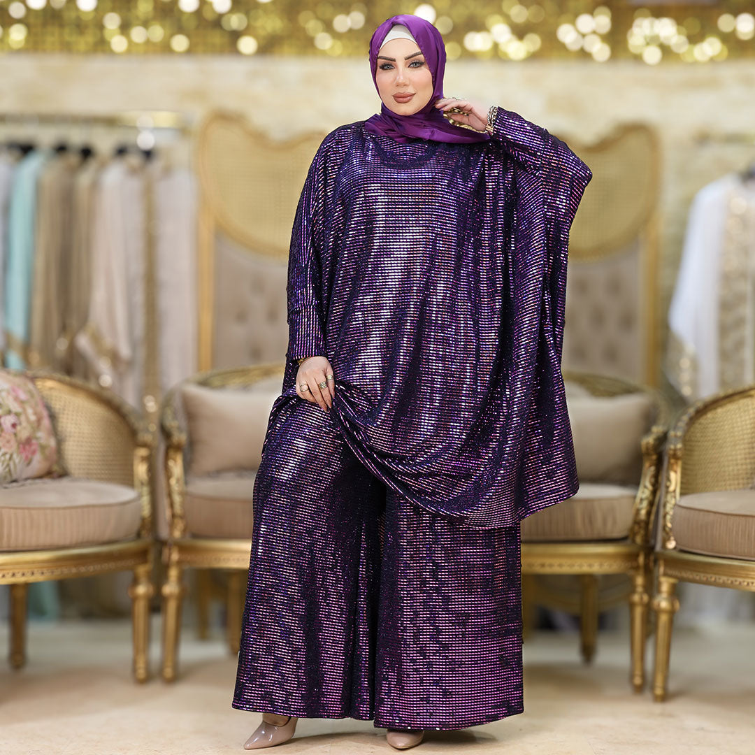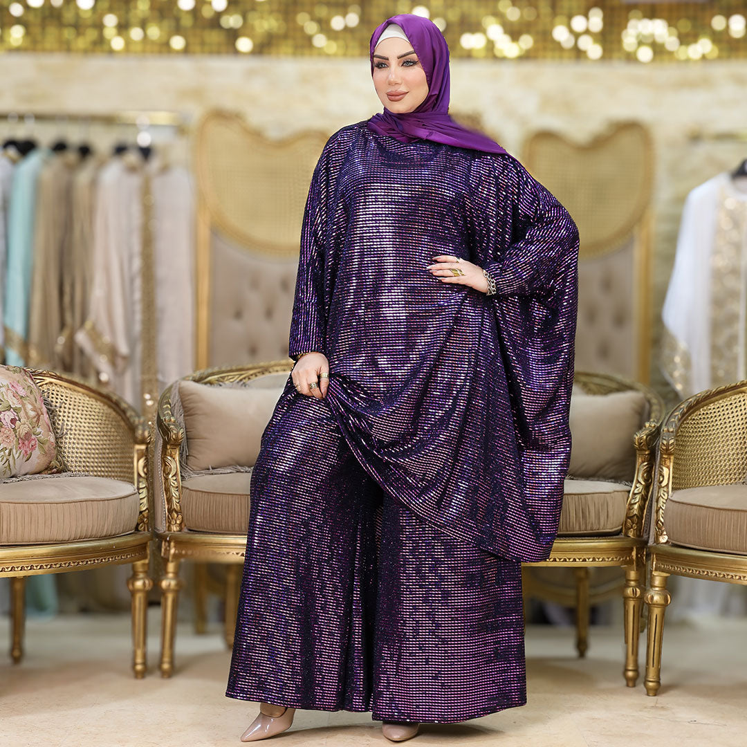 سوت قطعتين سواريه من خامة الكريستال شايني فري سايز تناسب ٧٠ك إلى ١٢٠ك