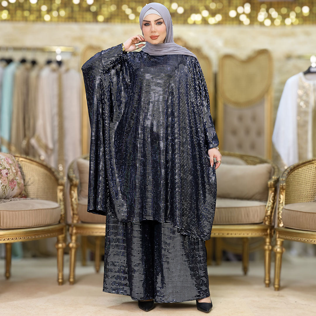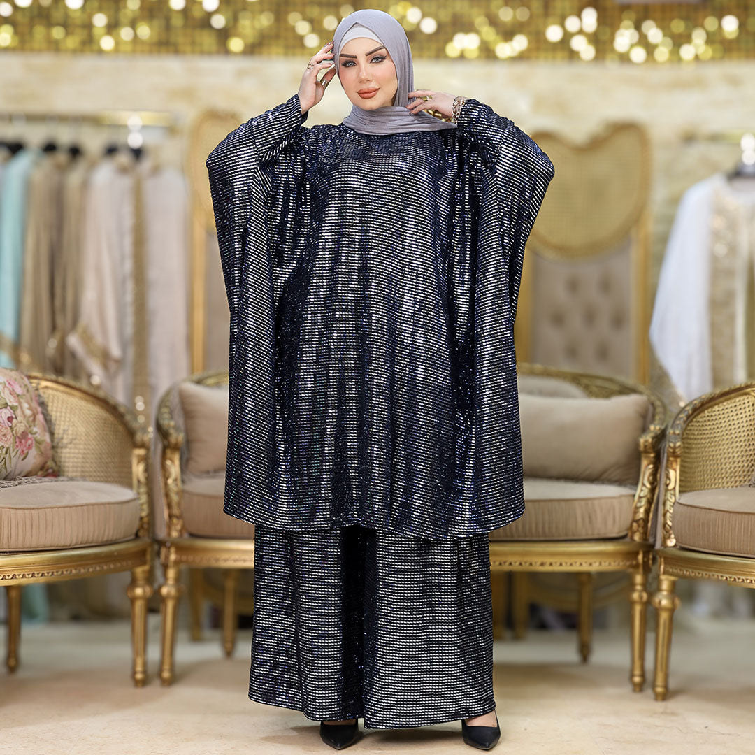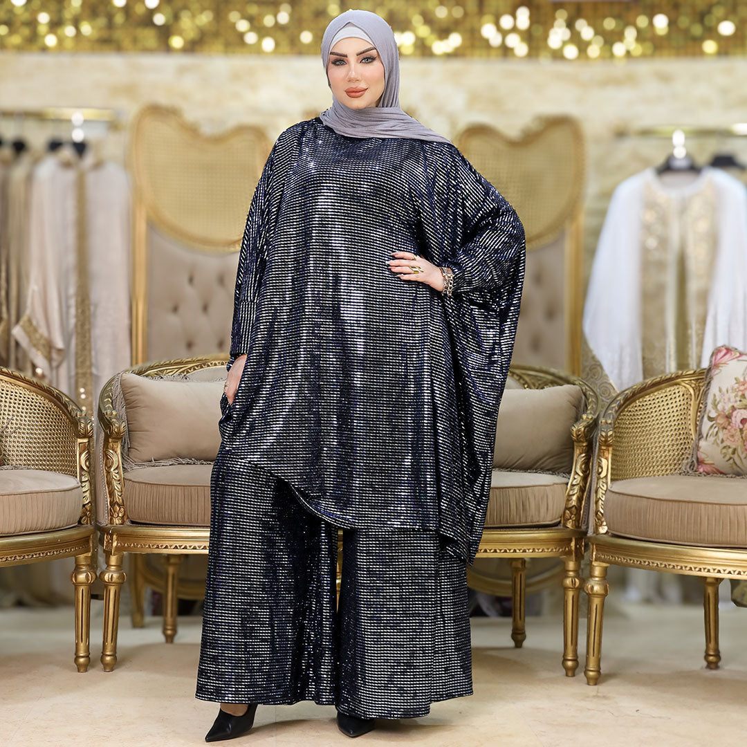 سوت قطعتين سواريه من خامة الكريستال شايني فري سايز تناسب ٧٠ك إلى ١٢٠ك