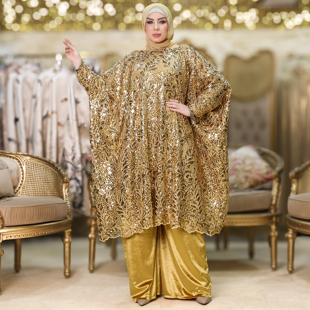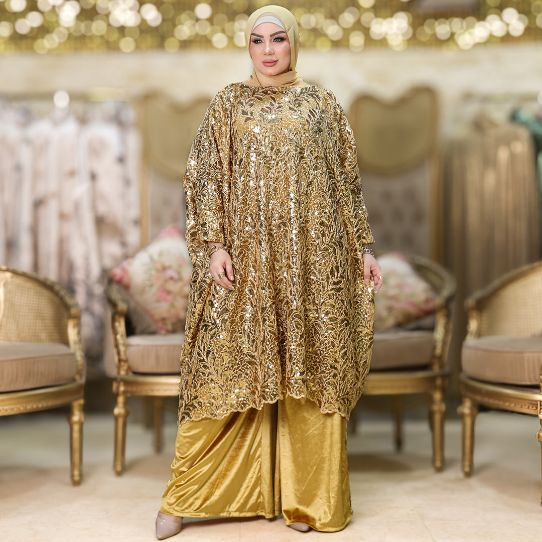 سوت قطعتين سواريه من خامة الأورجانزا ببطانة شمواه.