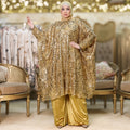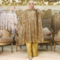 البنطلون شمواه بشريط تطريز أورجانزا من الجانب.