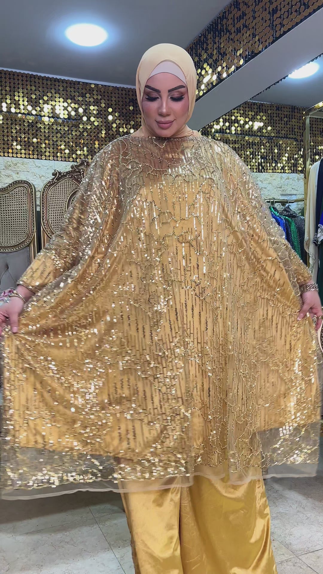 سوت قطعتين سواريه من خامة الأورجانزا ببطانة شمواه.