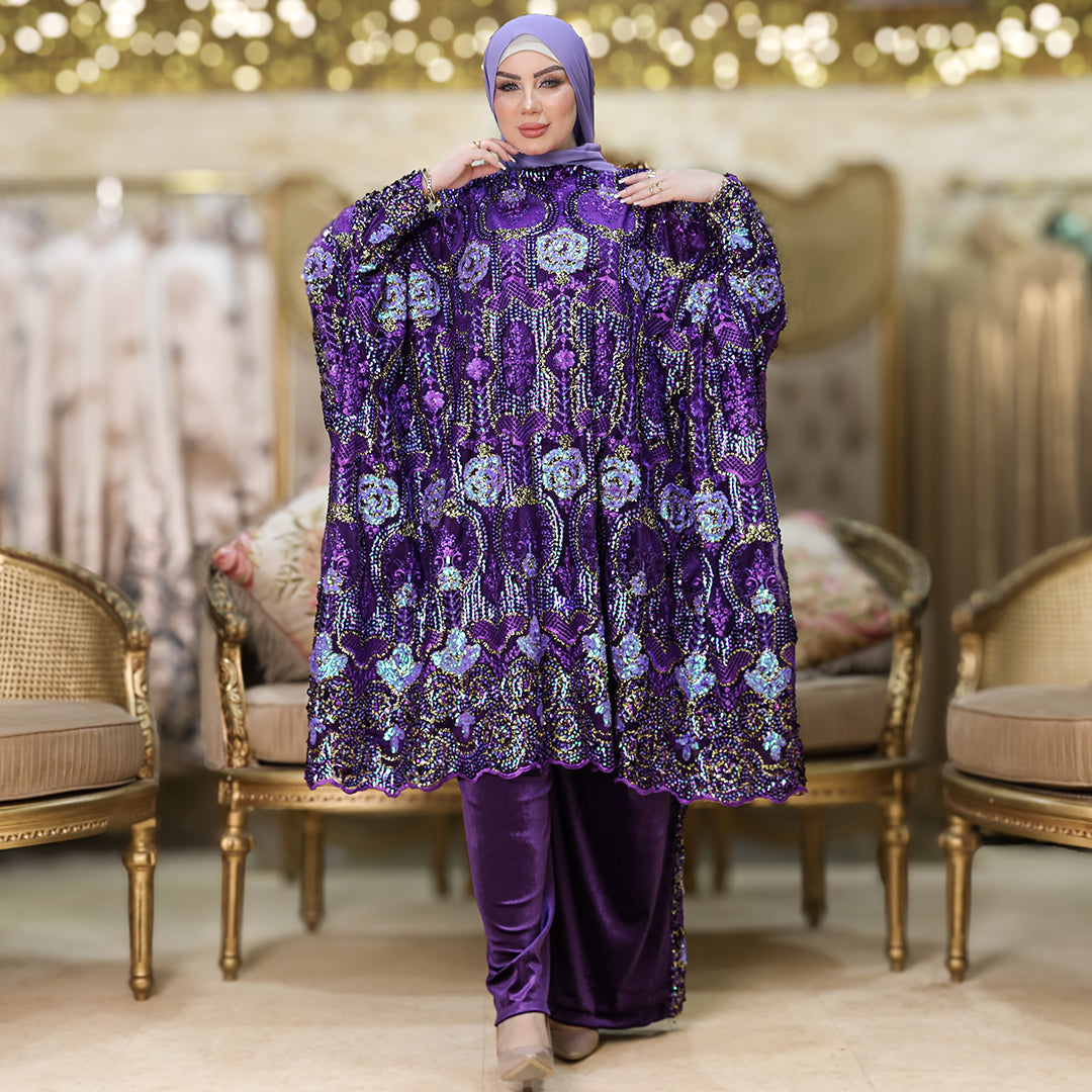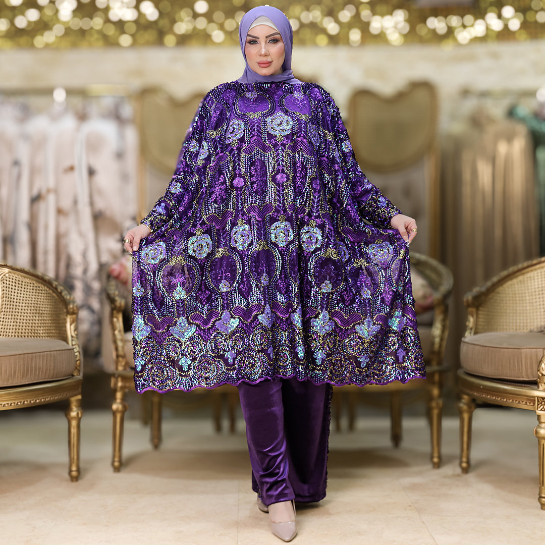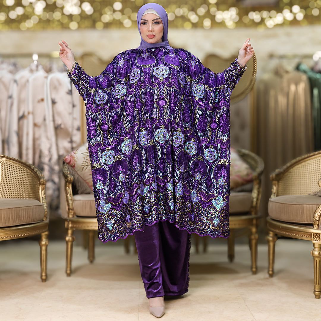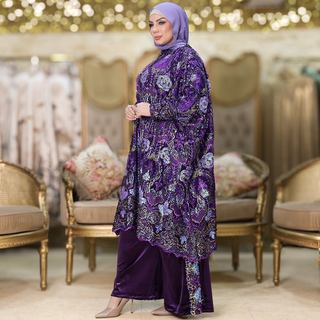 سوت قطعتين سواريه من خامة الأورجانزا ببطانة شمواه.