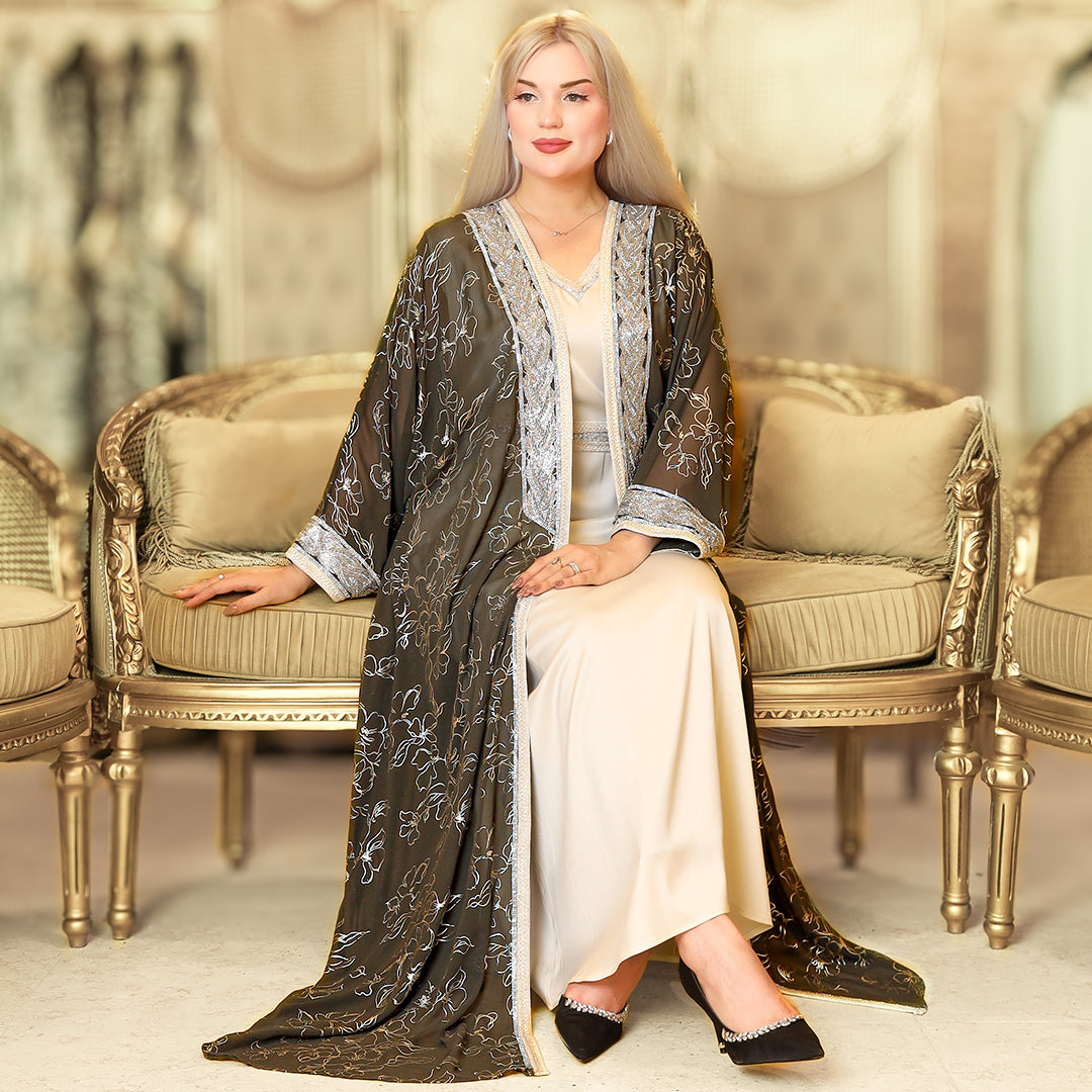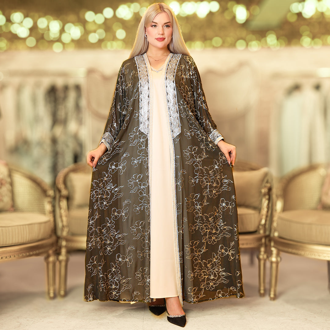 توينز عباية سواريه إماراتي قطعتين من السوفت السواريه و شريط تطريز - فري سايز تناسب ٧٠ك إلى ١٠٠ك