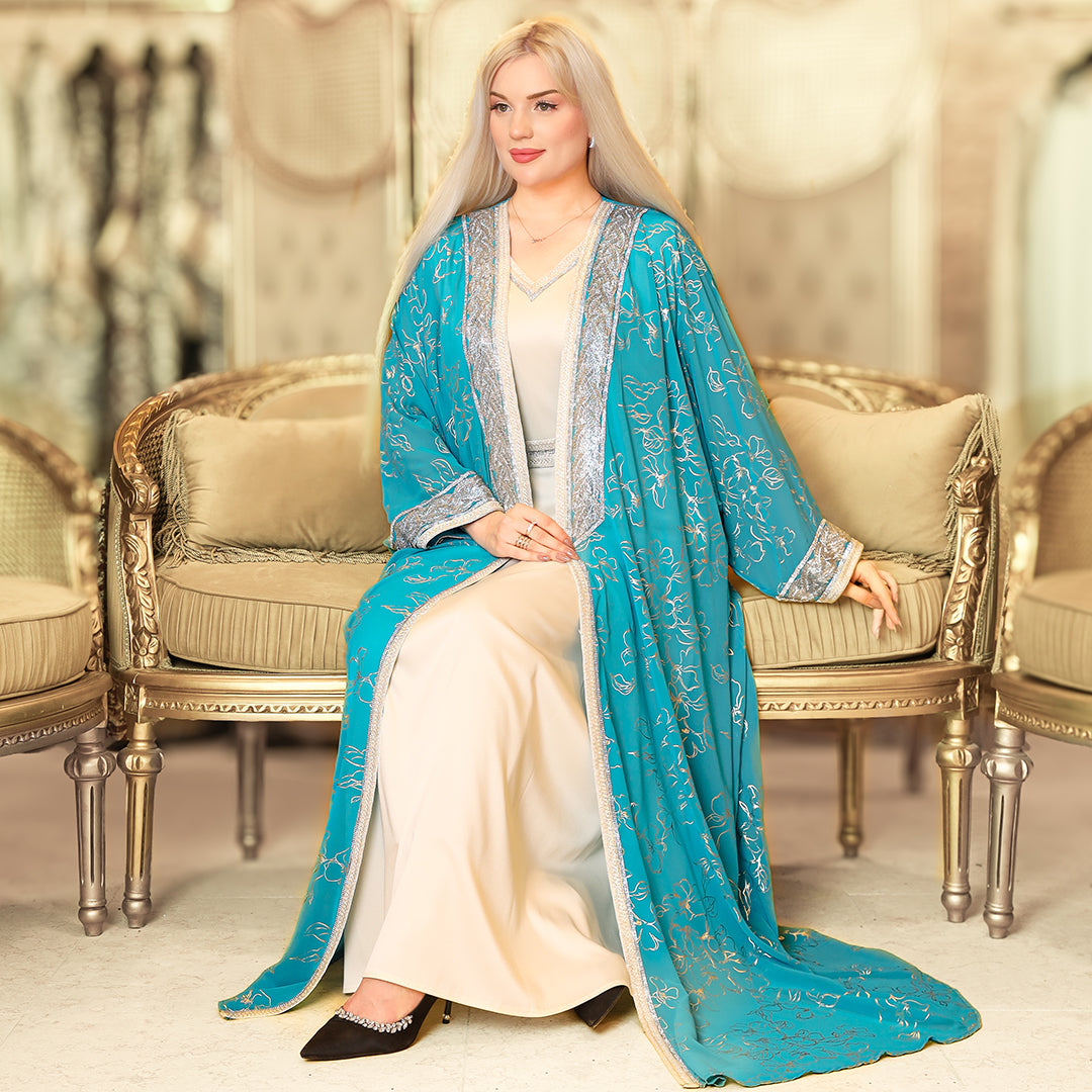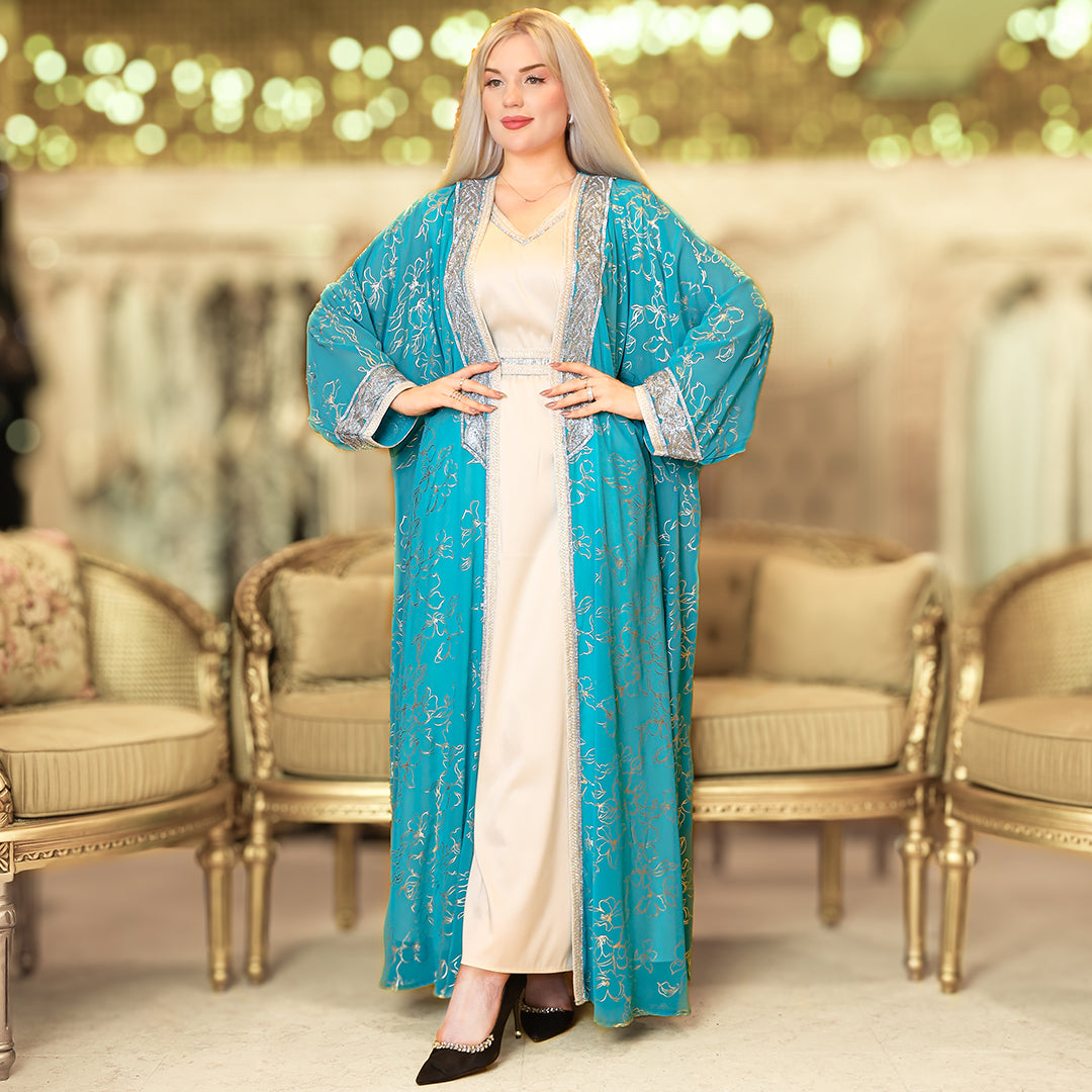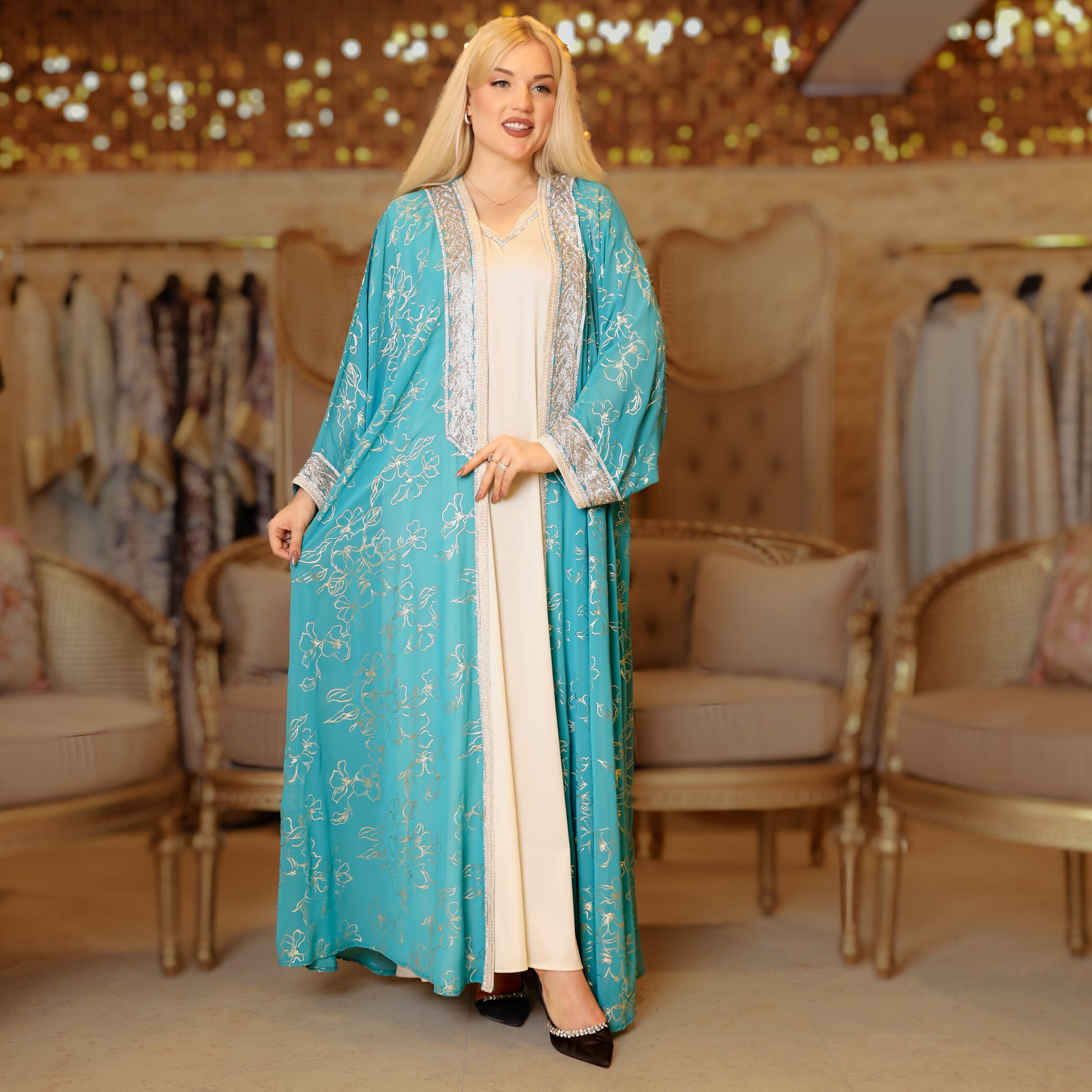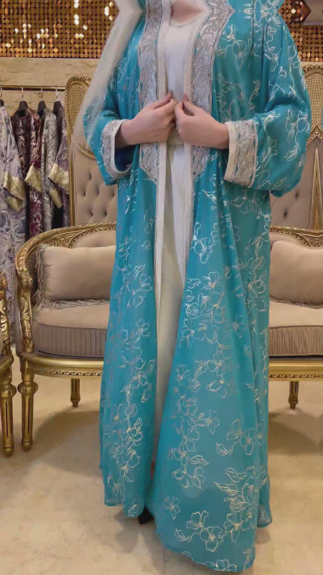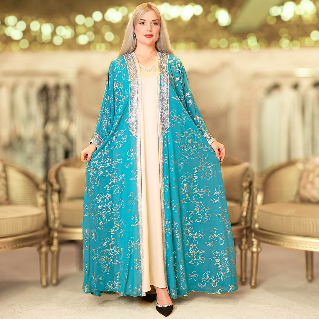توينز عباية سواريه إماراتي قطعتين من السوفت السواريه و شريط تطريز - فري سايز تناسب ٧٠ك إلى ١٠٠ك