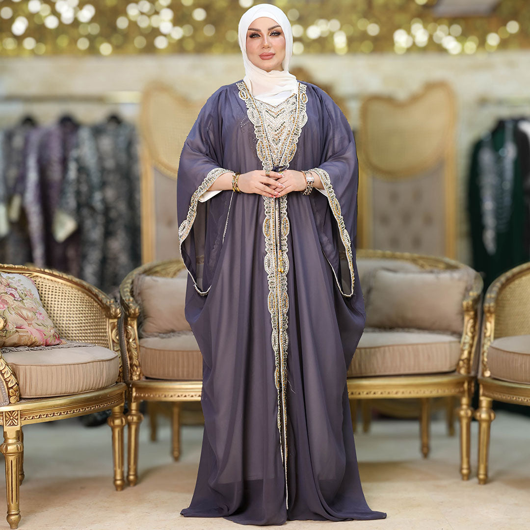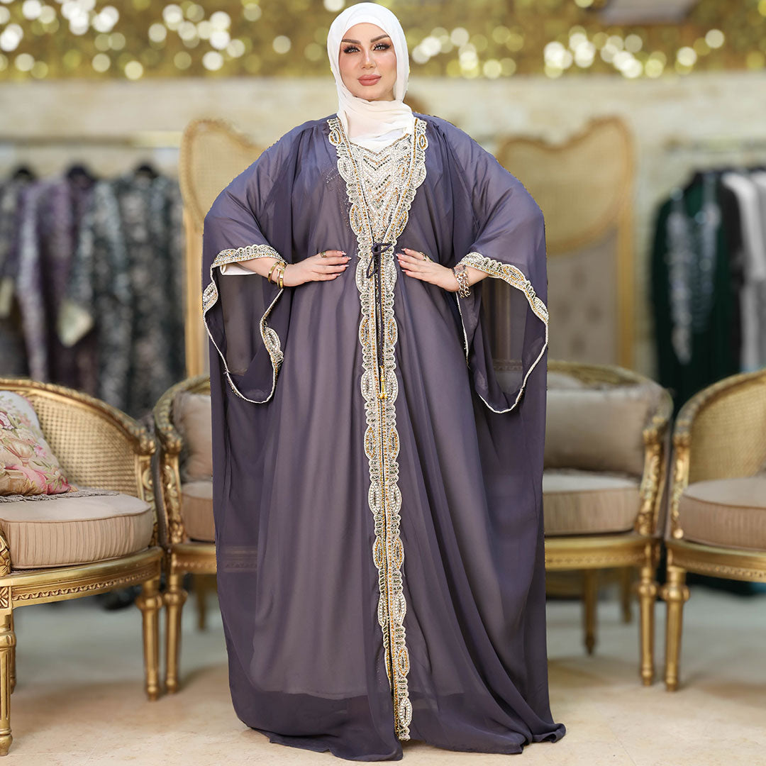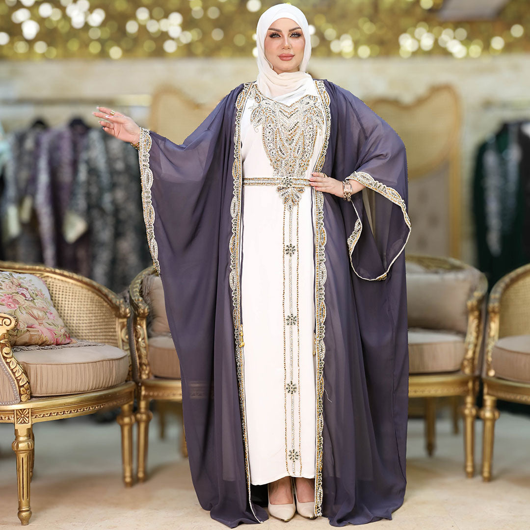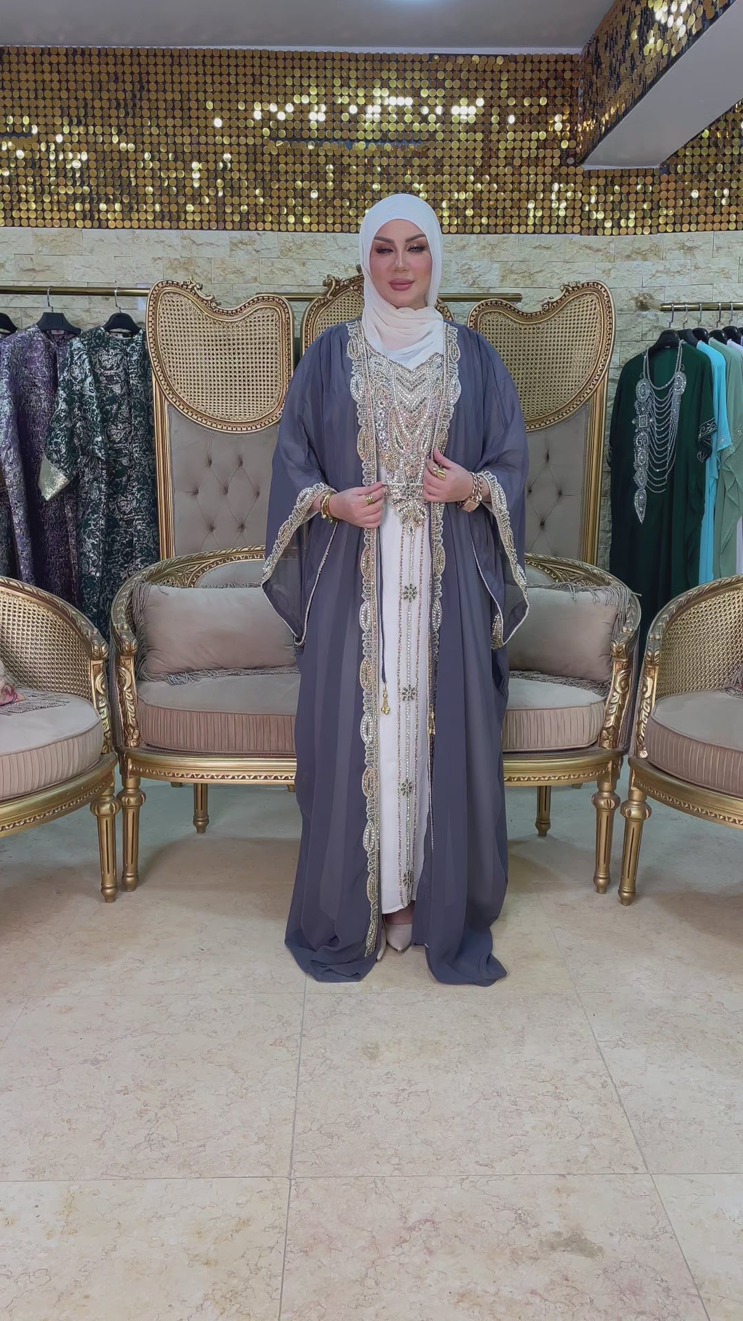 عباية كويتي توينز شيفون تطريز ستراس فري سايز تناسب ٧٠ك إلى ١٠٠ك