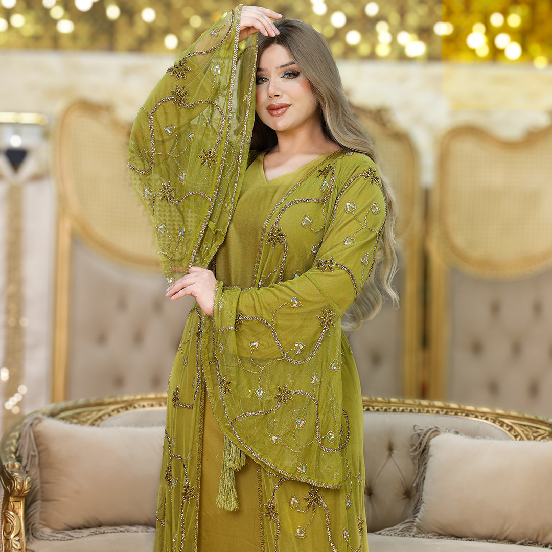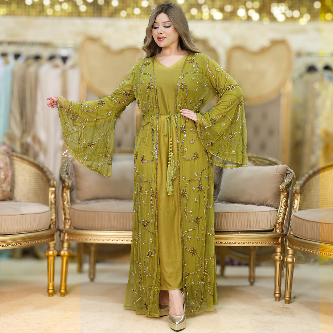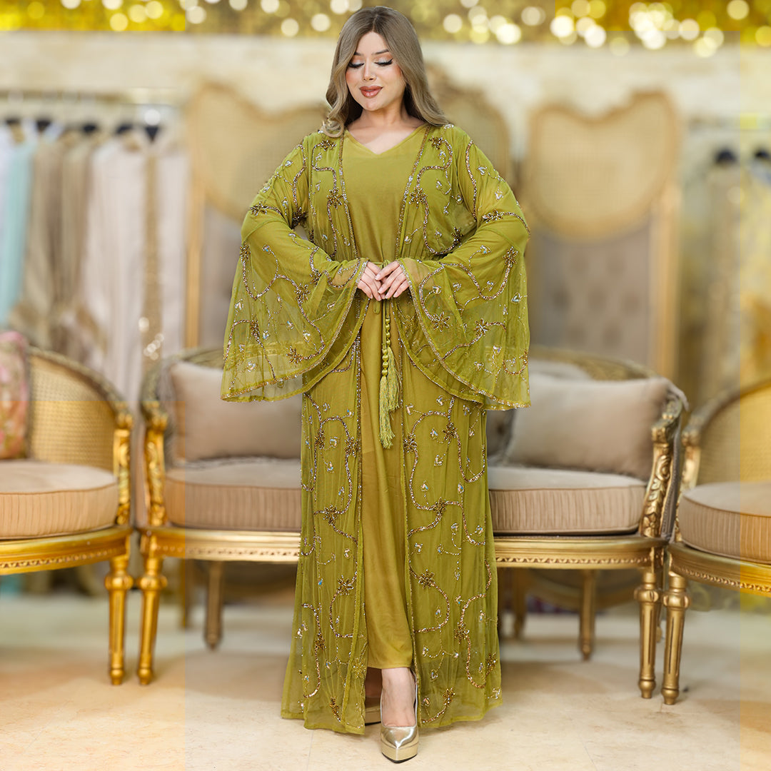 عباية كويتي شيفون تطريز ستراس فري سايز تناسب ٧٠ك إلى ١٠٠ك