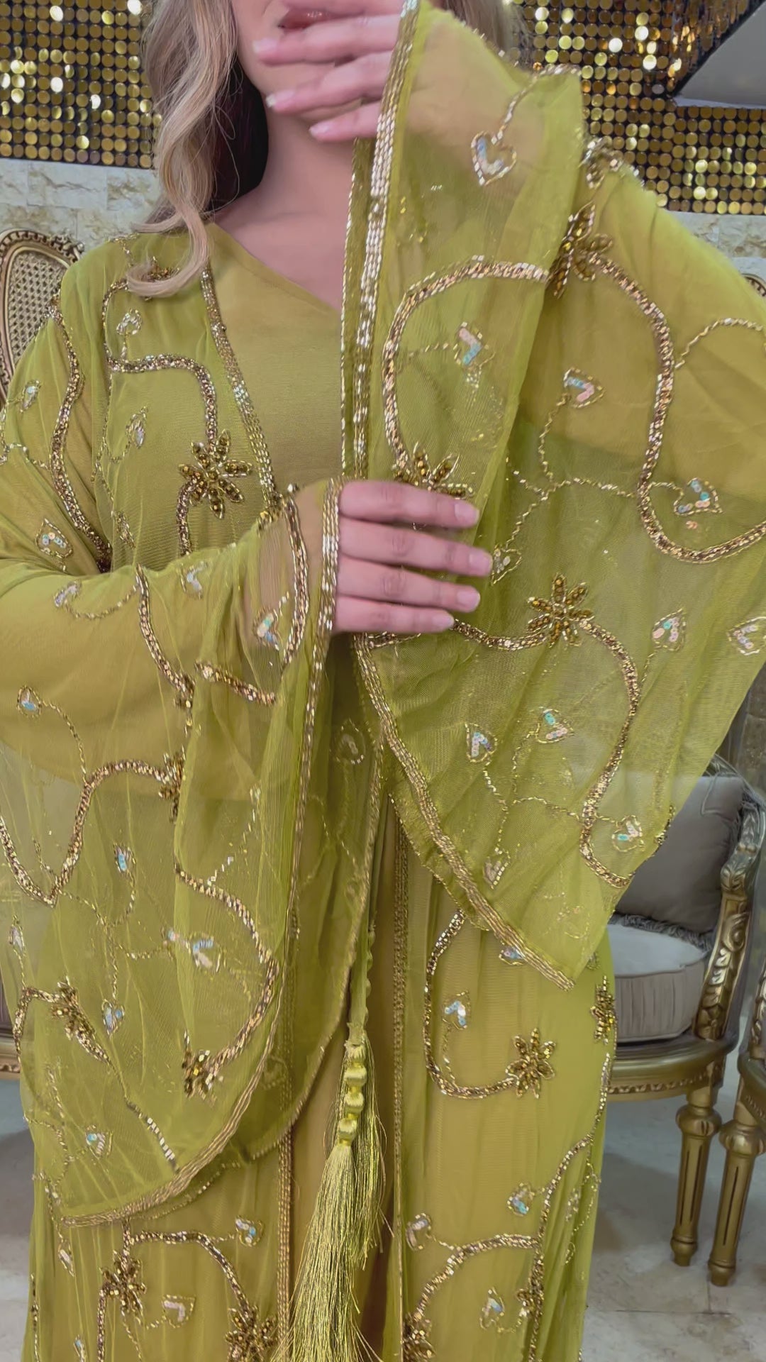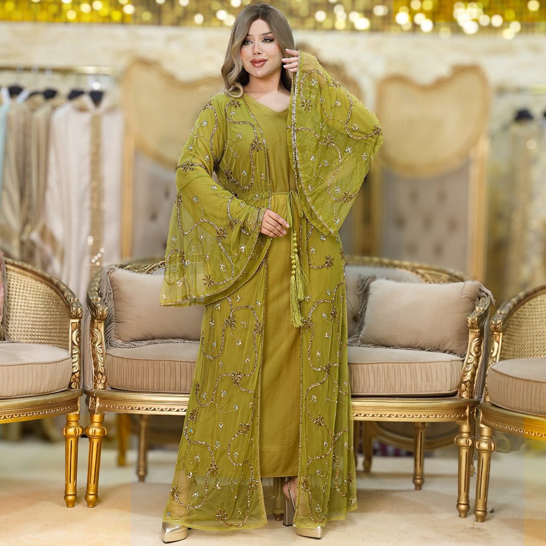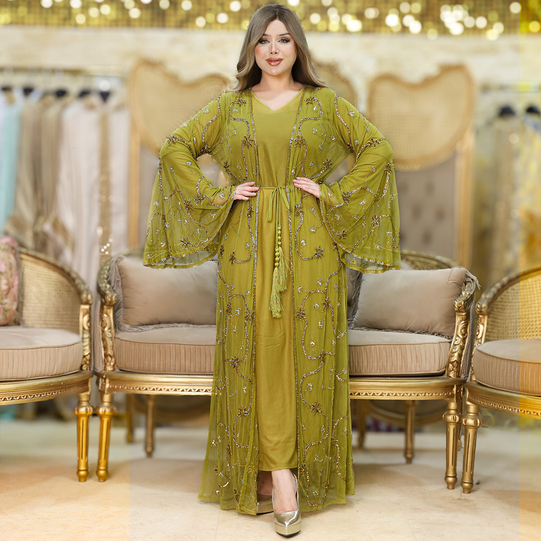 عباية كويتي شيفون تطريز ستراس فري سايز تناسب ٧٠ك إلى ١٠٠ك