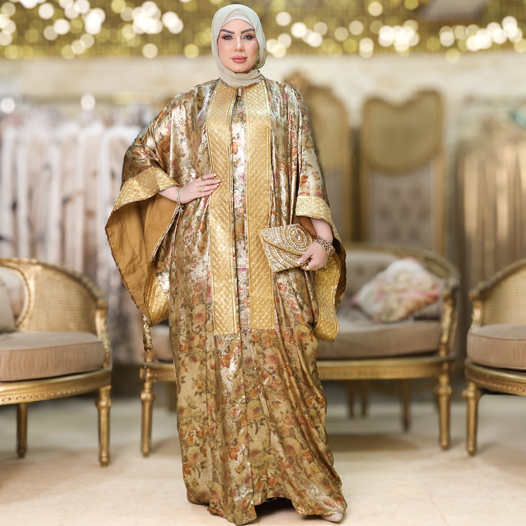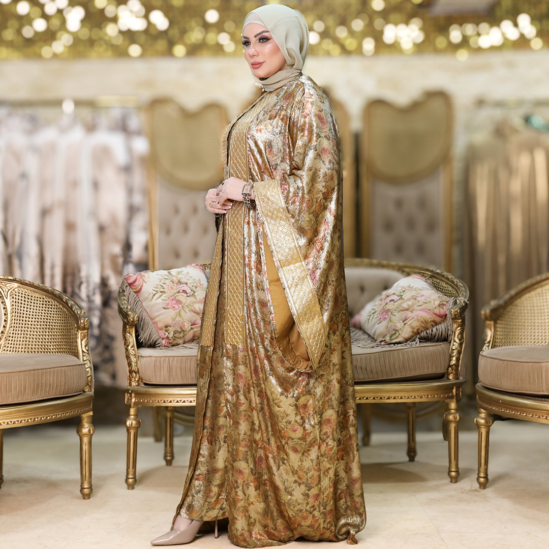 قفطان أرماني ميتالك مطرز بشريط تطريز هندي مع بيزيك من نفس الخامه