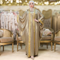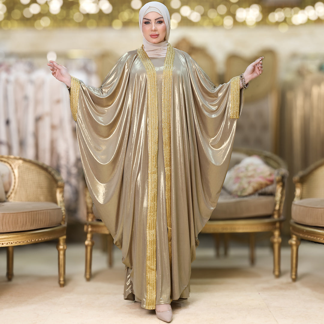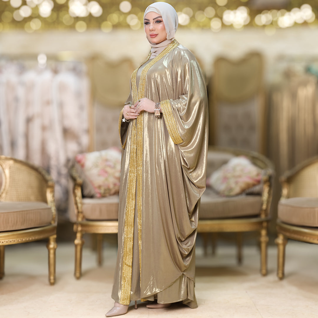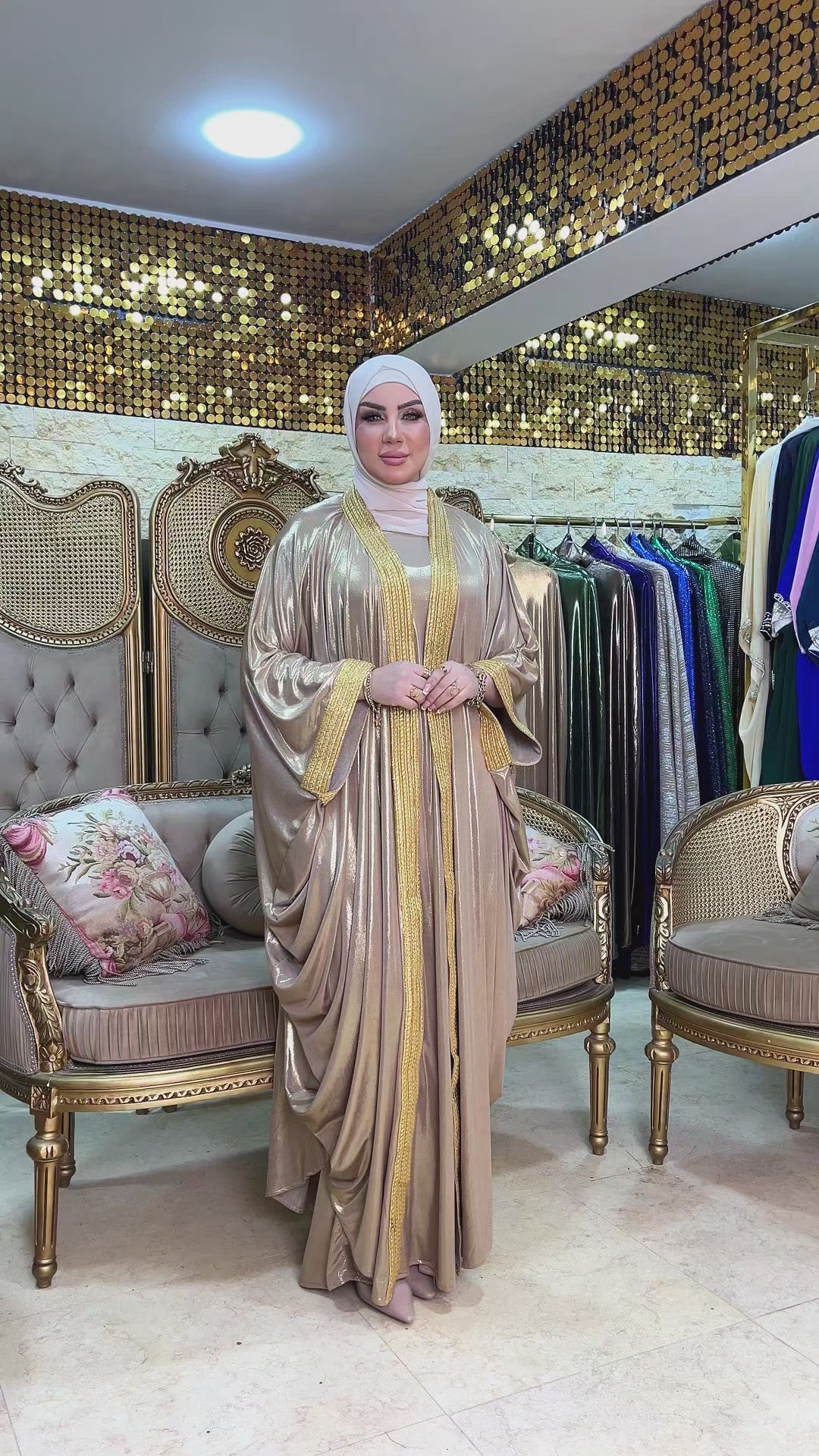 طقم قفطان إماراتي من مصنعنا بدبي، قطعتين من خامة الشايني ميتالك و مطرز بشريط تطريز هندي فري سايز يناسب ٧٠ك إلى ١٠٠ك