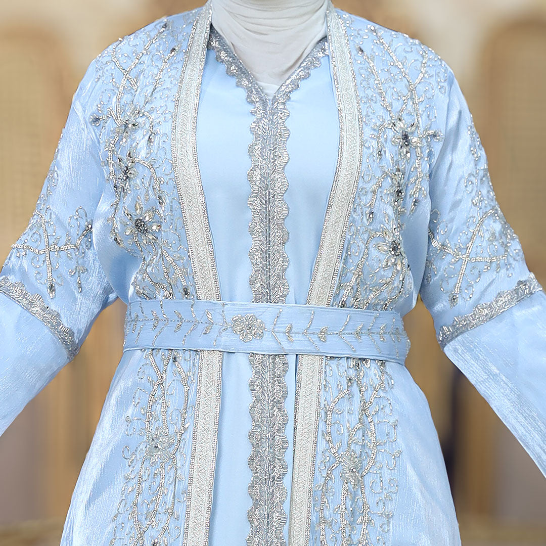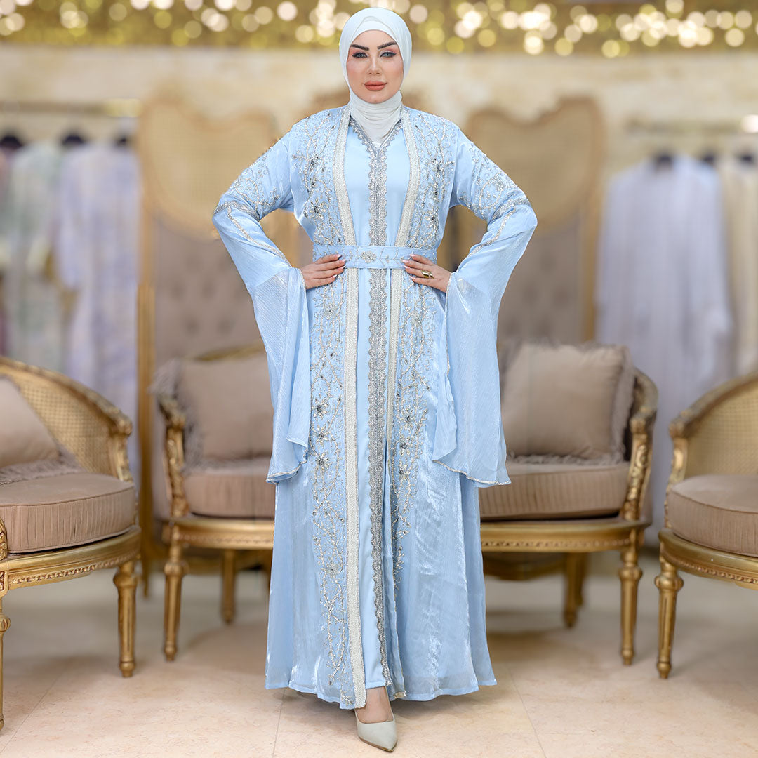 توينز عباية إماراتي أورجانزا سواريه تطريز هندي فري سايز تناسب ٧٠ك الى ١٠٠ك
