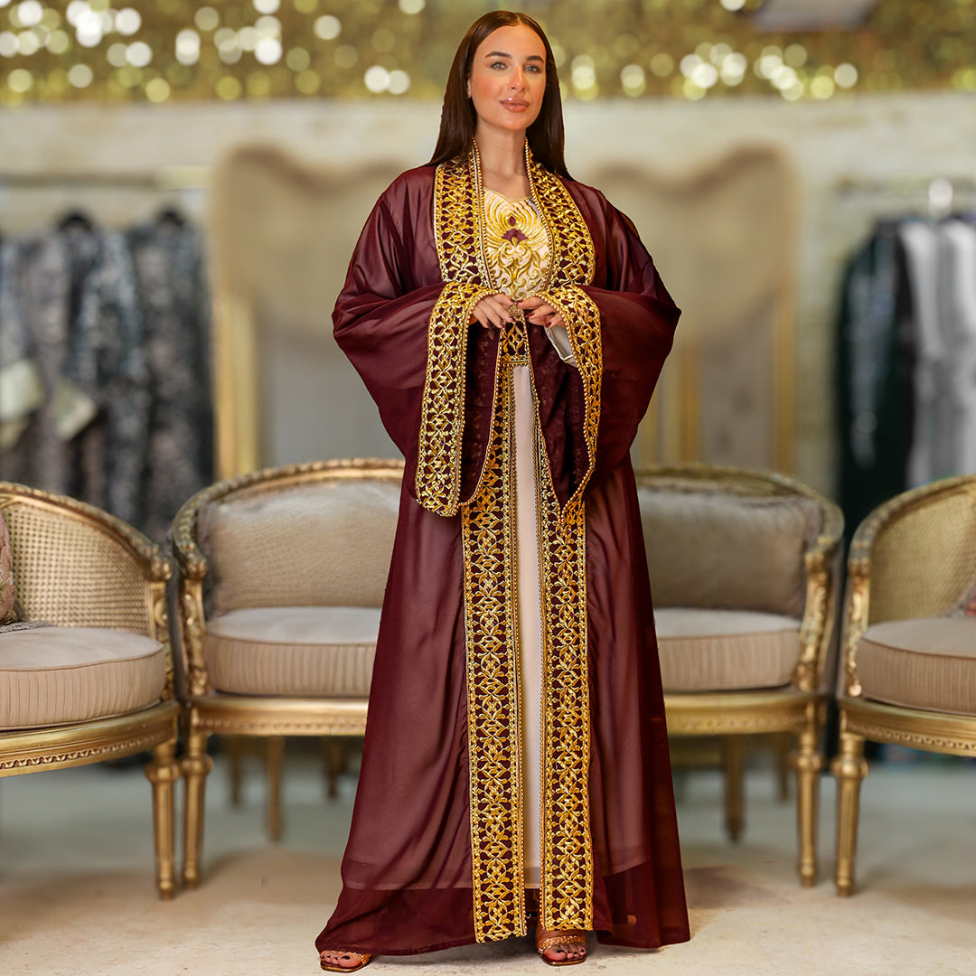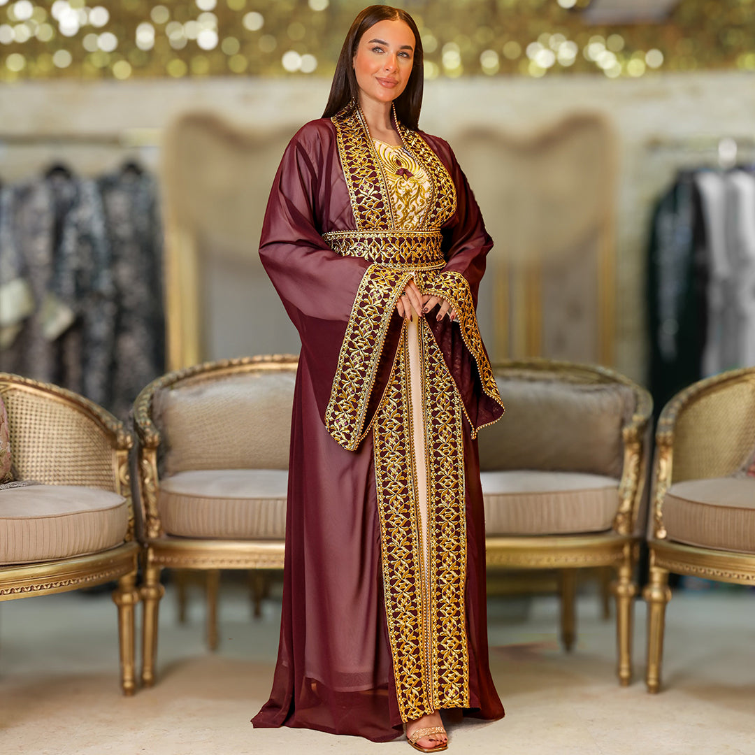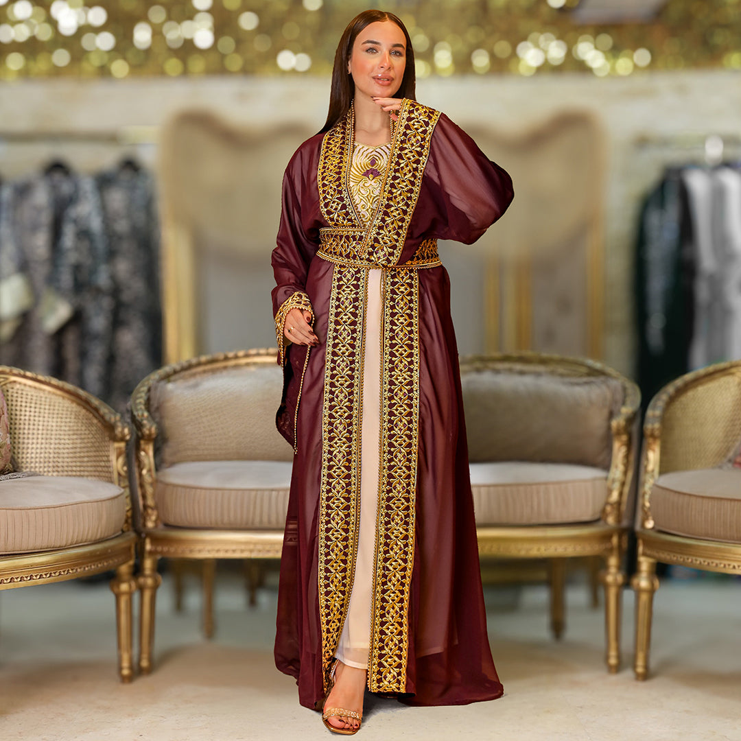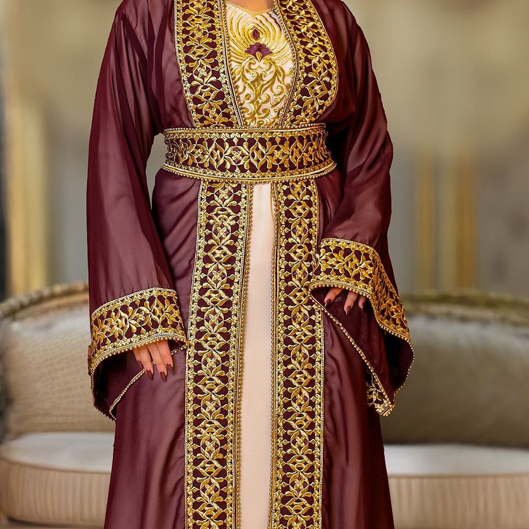 تكشيطة مغربية تطريز يدوي قطعتين و حزام فري سايز تناسب٦٠ ك إلى ٩٠ك
