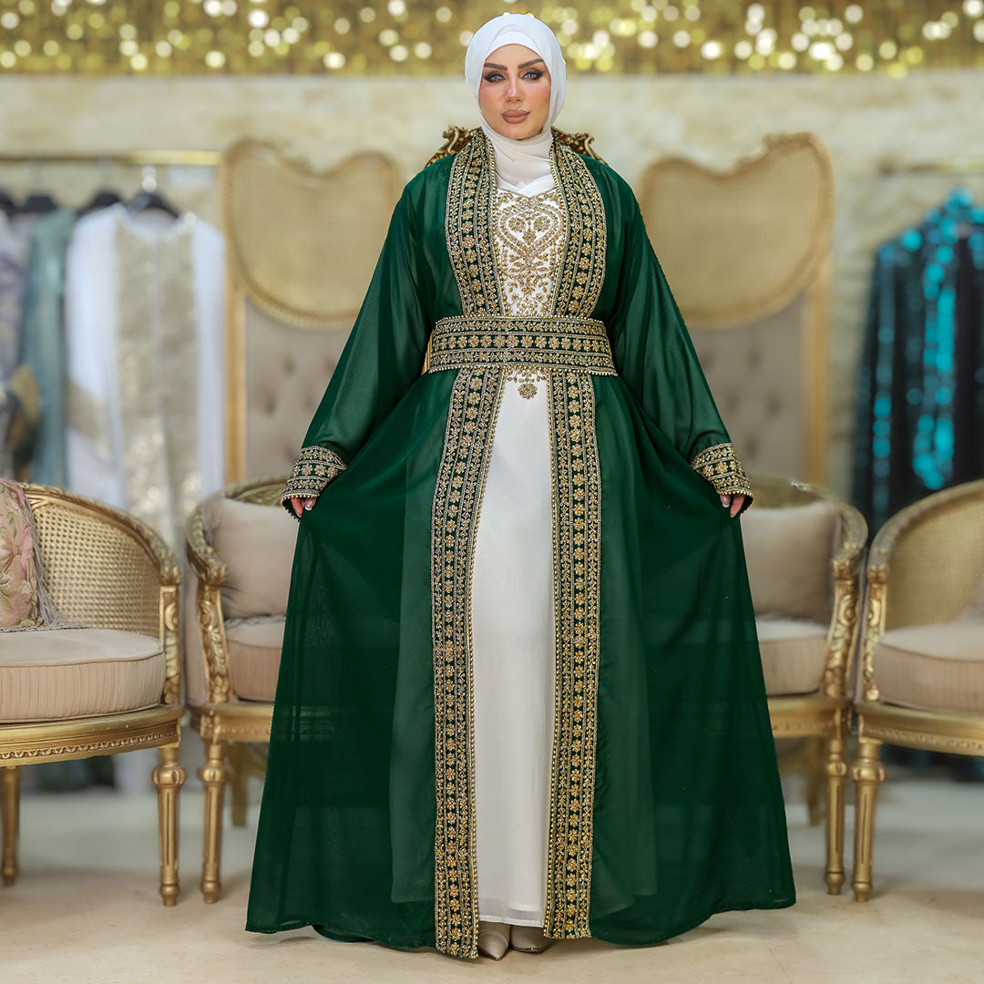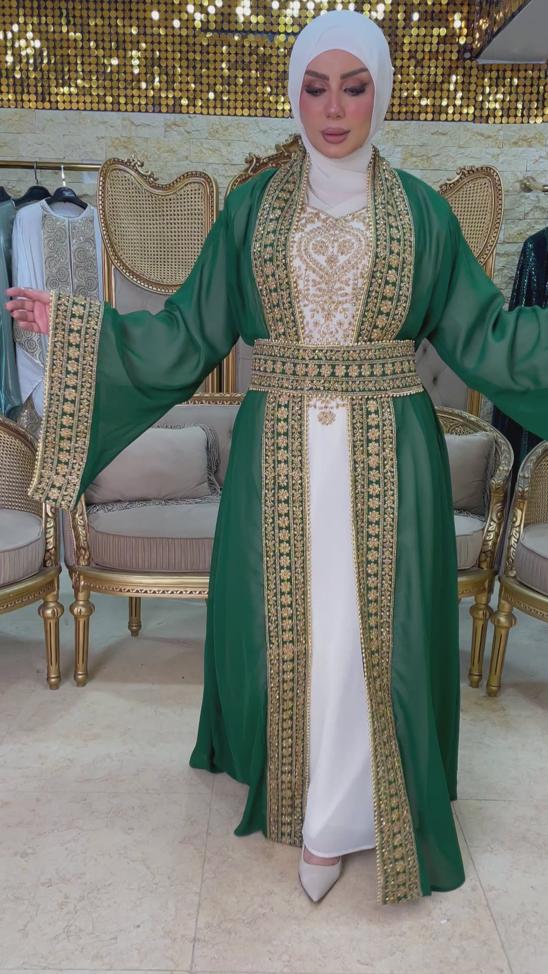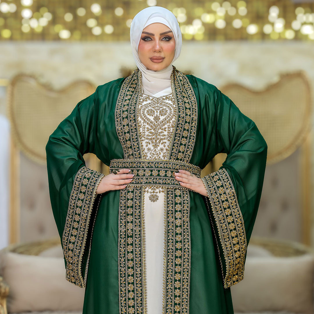 تكشيطة مغربية تطريز يدوي قطعتين و حزام فري سايز تناسب٦٠ ك إلى ٩٠ك