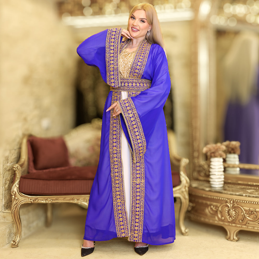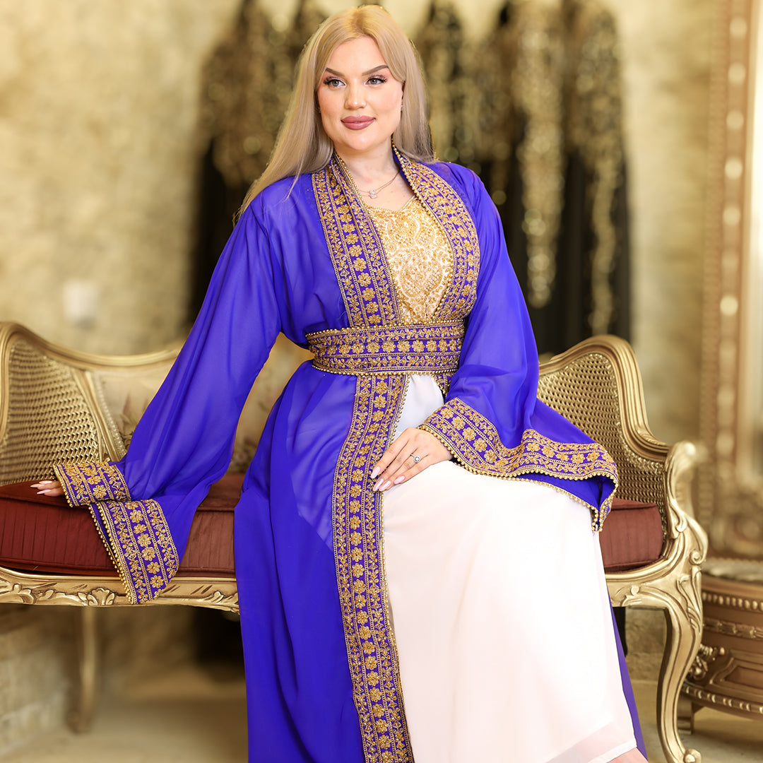 تكشيطة مغربية تطريز يدوي قطعتين و حزام فري سايز تناسب٦٠ ك إلى ٩٠ك