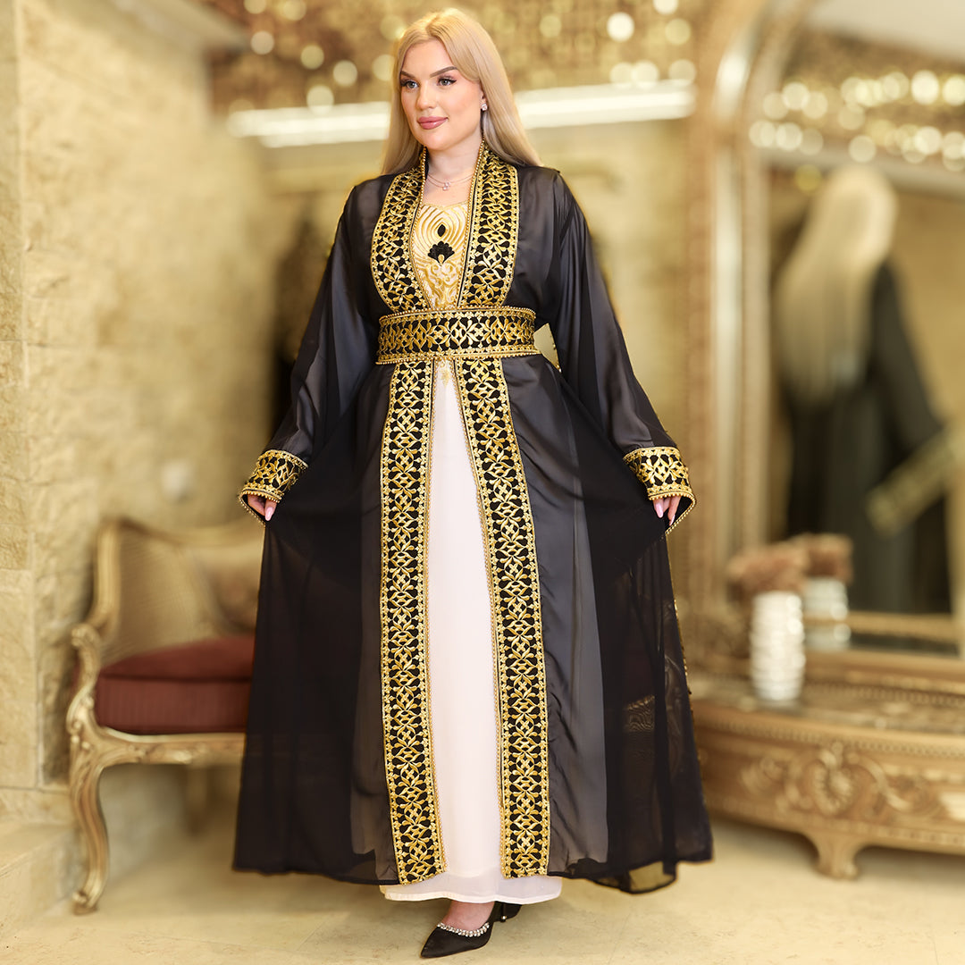 تكشيطة مغربية تطريز يدوي قطعتين و حزام فري سايز تناسب٦٠ ك إلى ٩٠ك