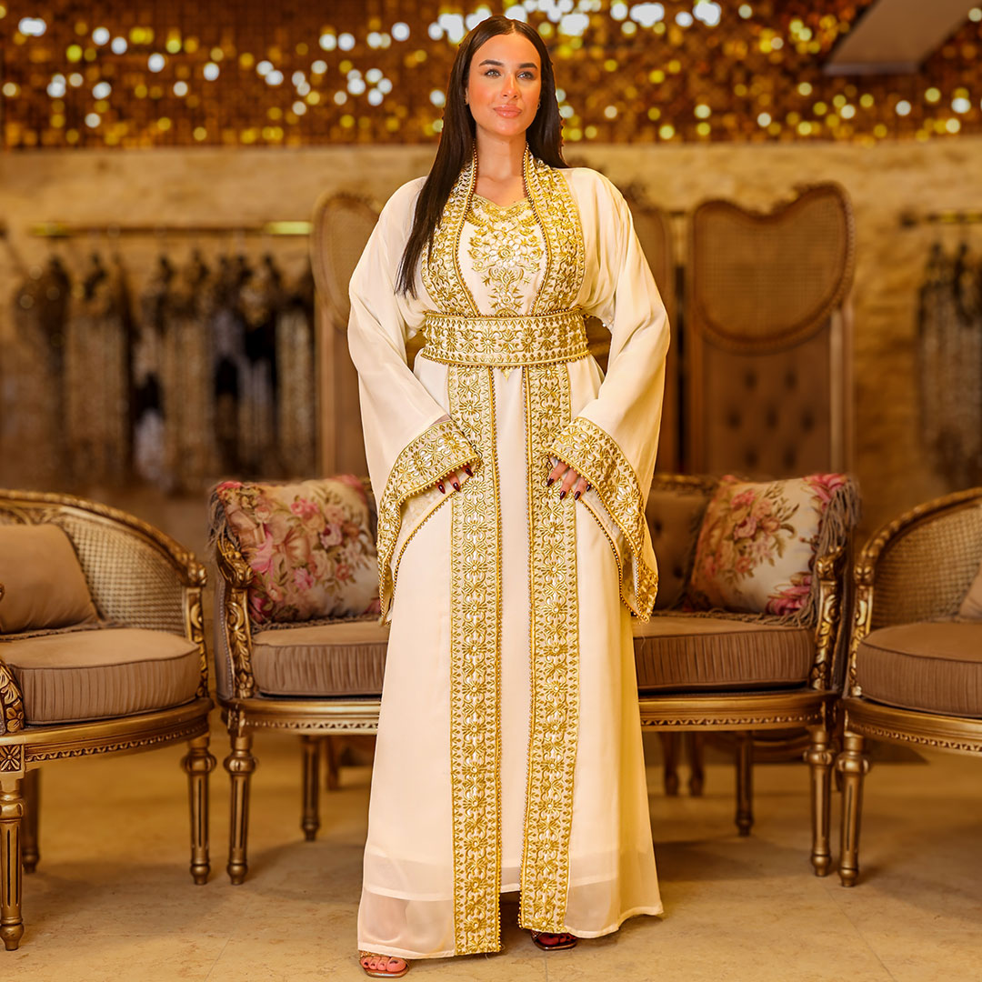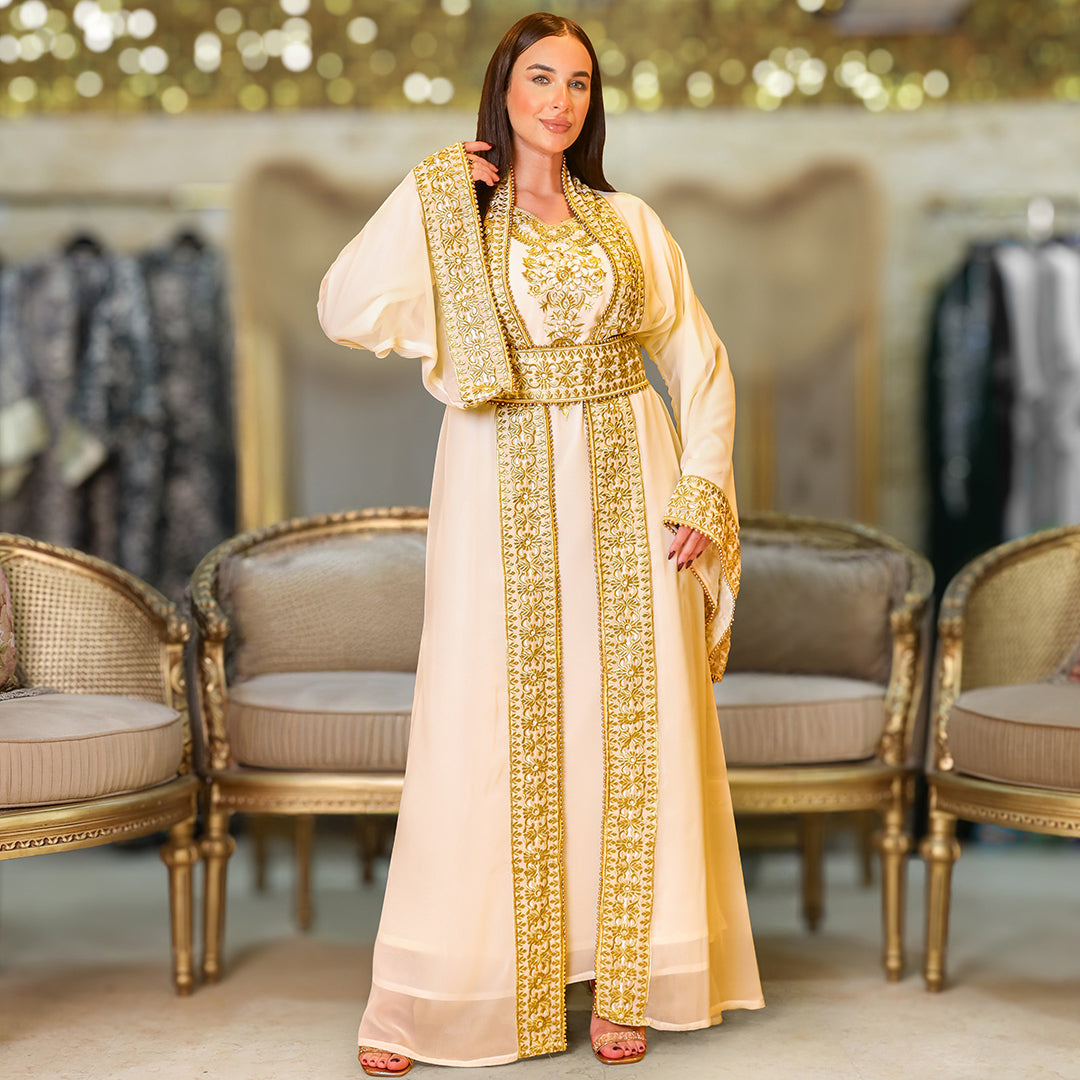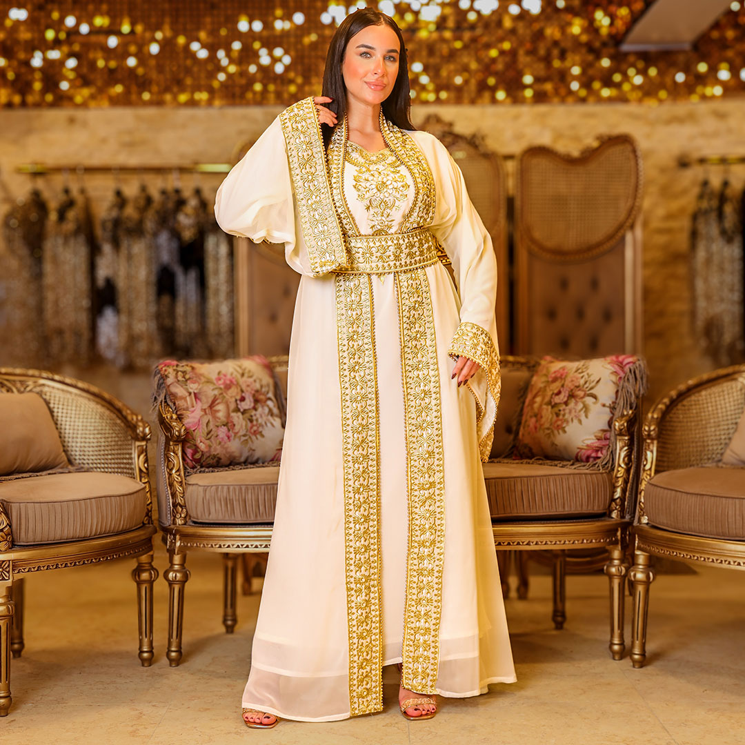 تكشيطة مغربية تطريز يدوي قطعتين و حزام فري سايز تناسب٦٠ ك إلى ٩٠ك