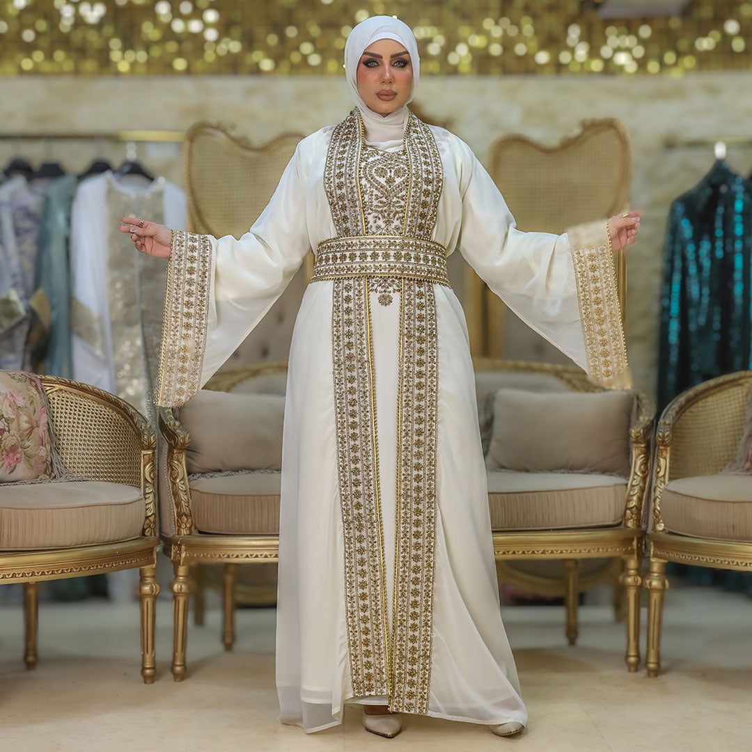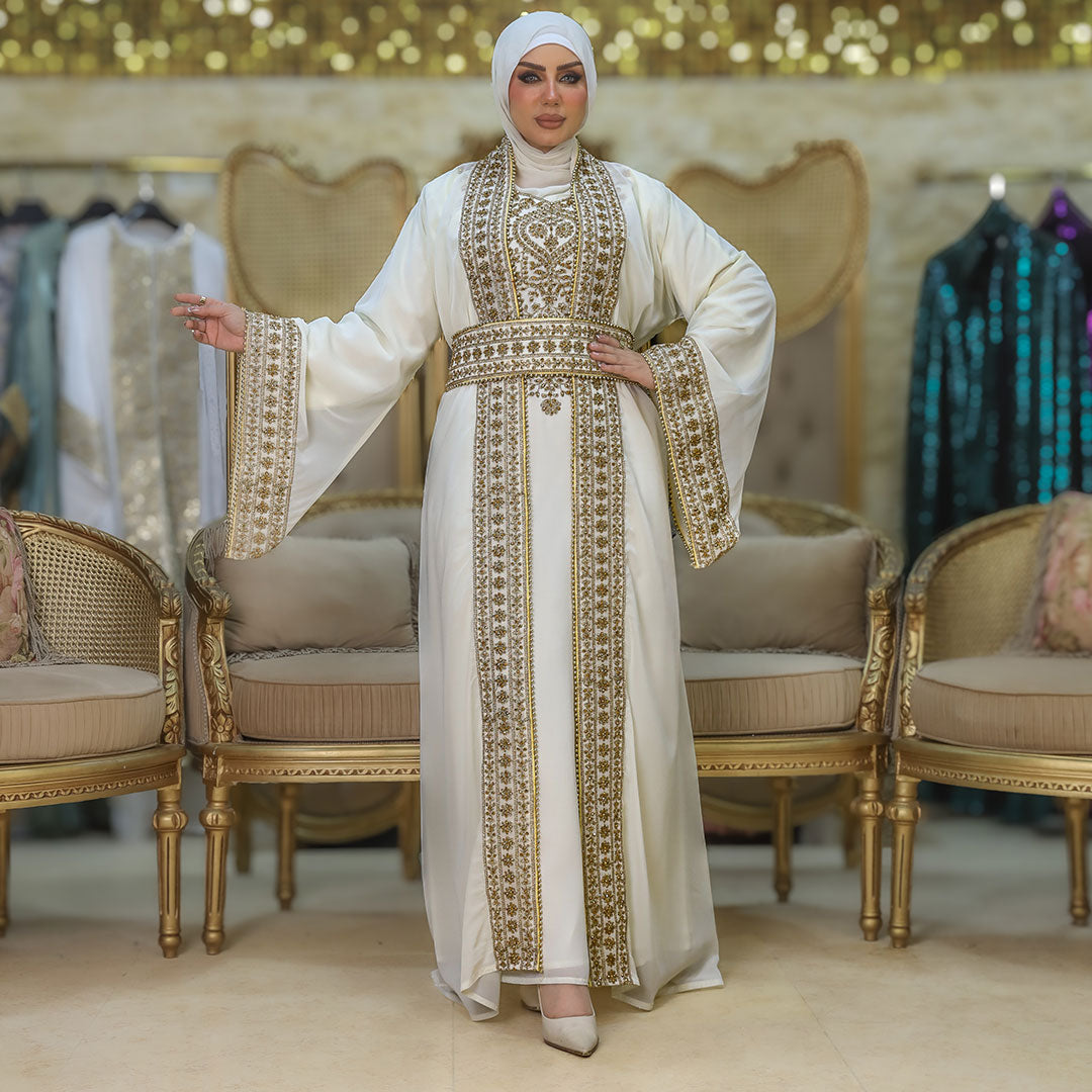 تكشيطة مغربية تطريز يدوي قطعتين و حزام فري سايز تناسب٦٠ ك إلى ٩٠ك