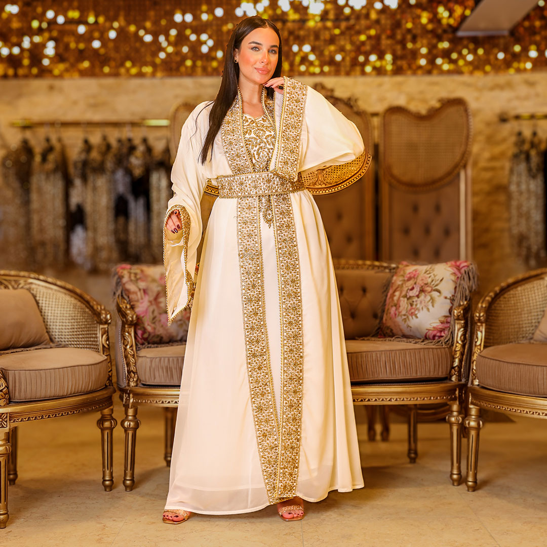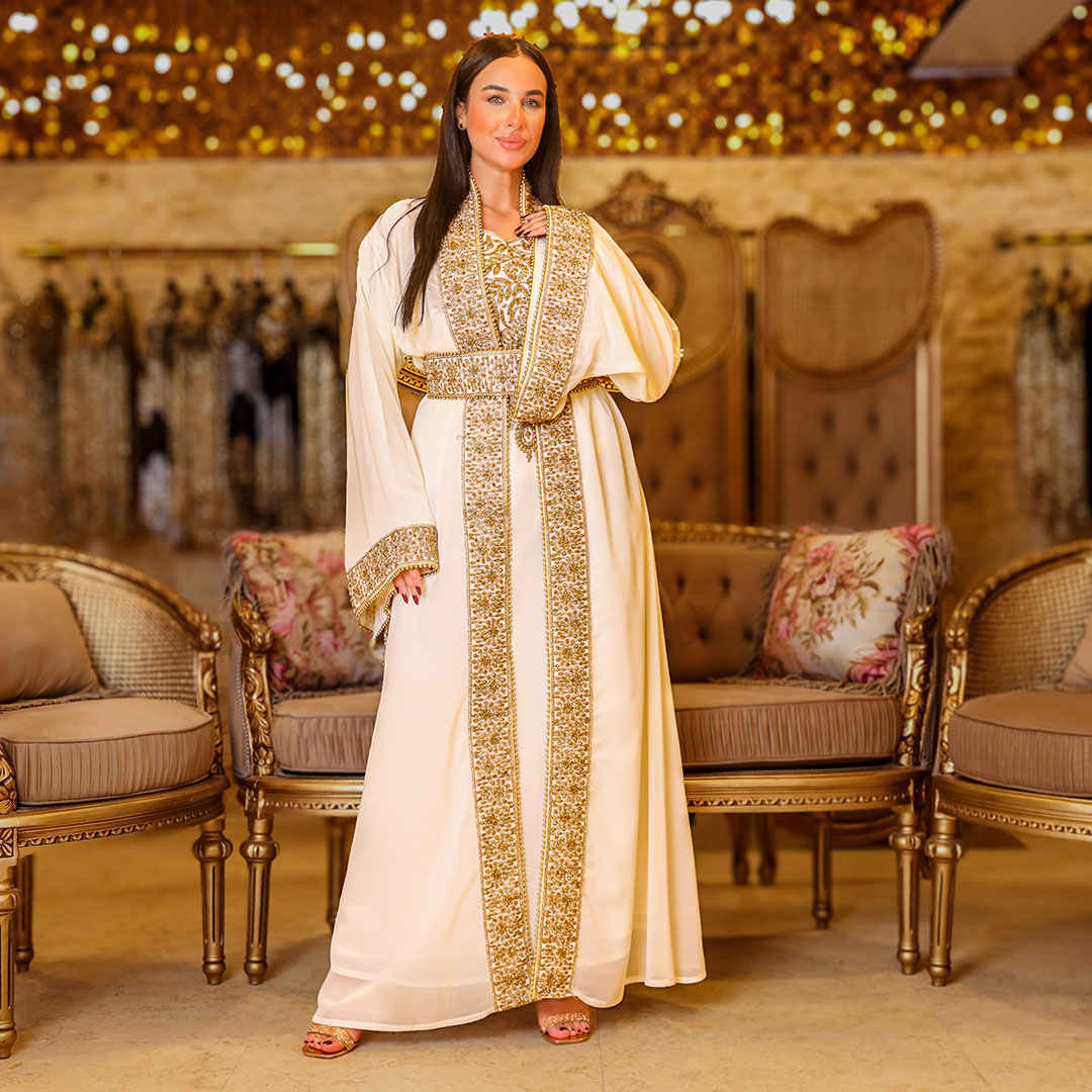 تكشيطة مغربية تطريز يدوي قطعتين و حزام فري سايز تناسب٦٠ ك إلى ٩٠ك
