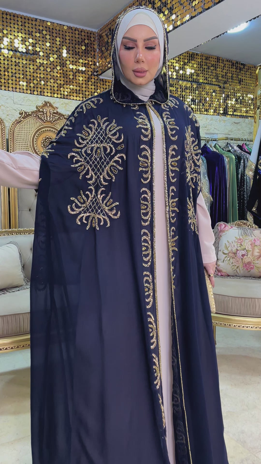 قفطان سواريه مغربي بكابيشون تطريز كامل هندي هاند ميد فري سايز يناسب ٧٠ك إلى ١٠٠ك.