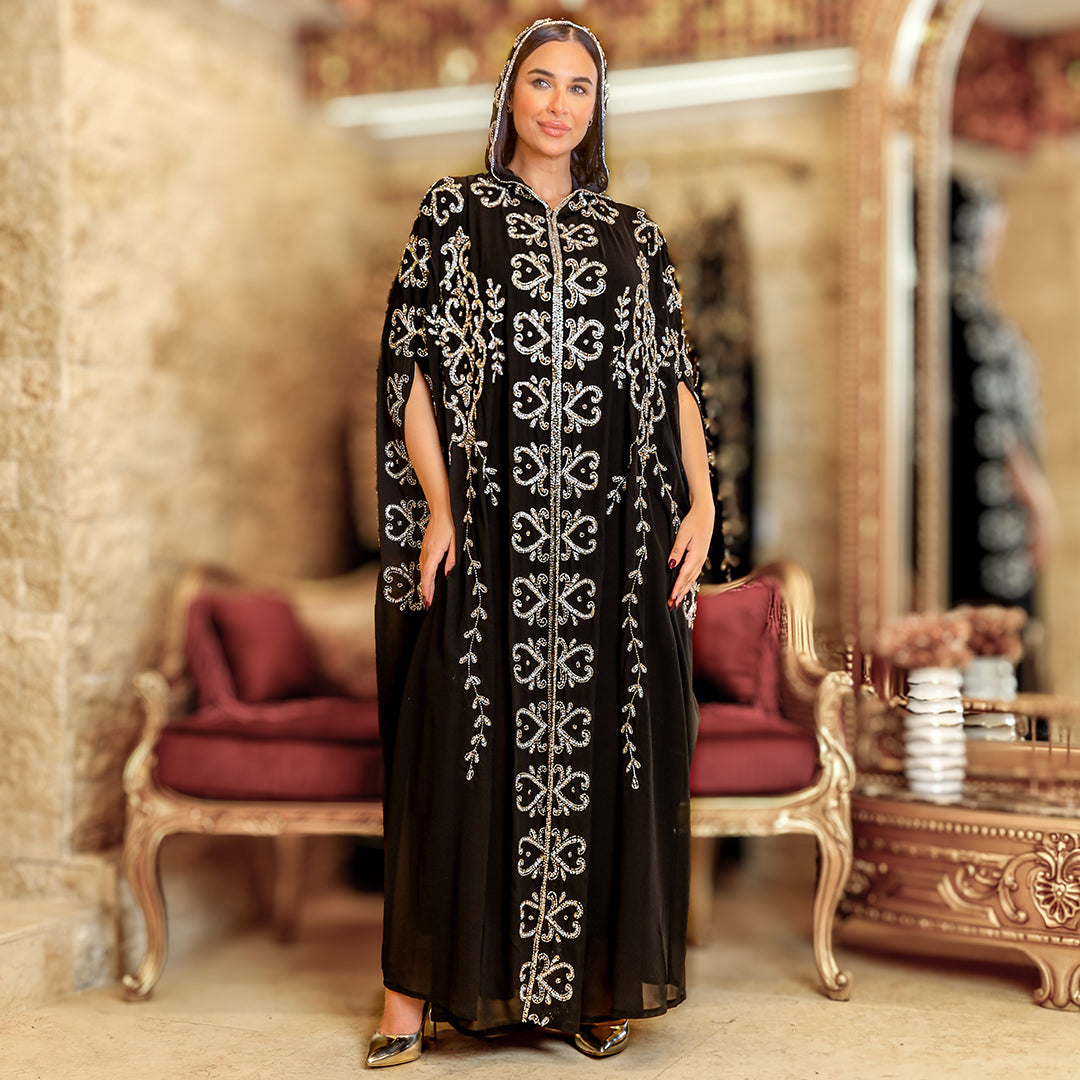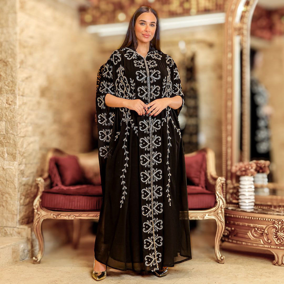 قفطان سواريه مغربي بكابيشون تطريز كامل هندي هاند ميد فري سايز يناسب ٧٠ك إلى ١٠٠ك.