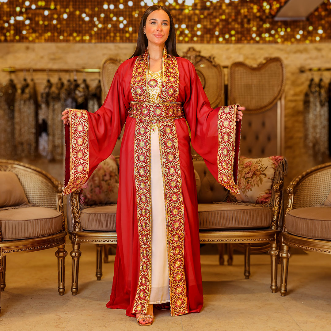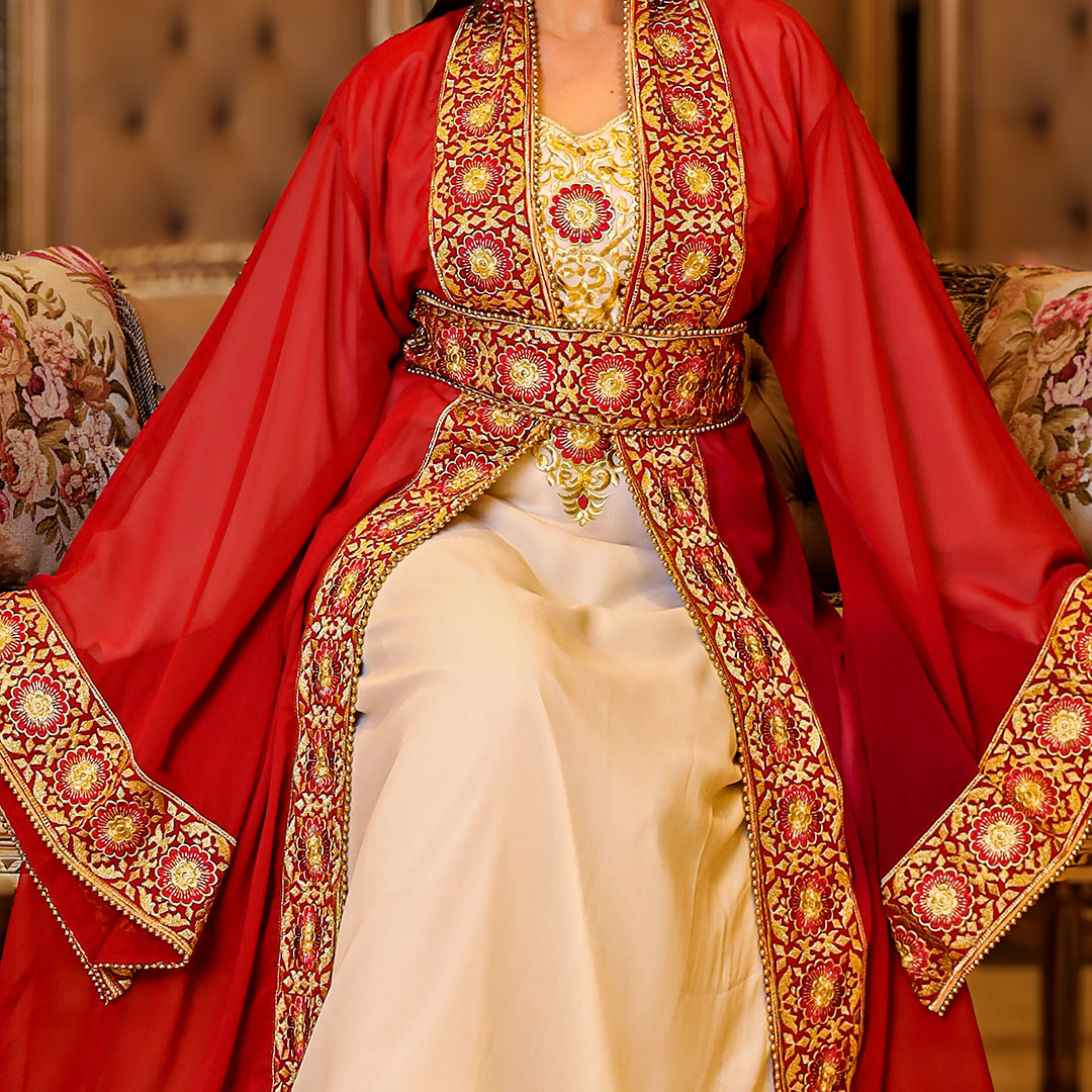 تكشيطة مغربية تطريز يدوي قطعتين و حزام فري سايز تناسب٦٠ ك إلى ٩٠ك