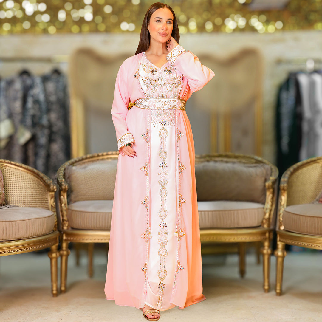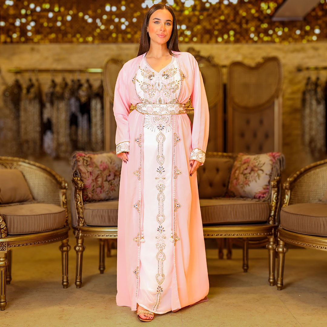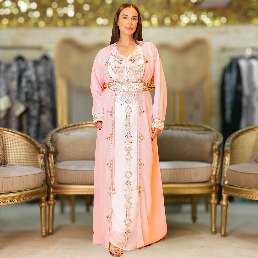 تكشيطة مغربية تطريز يدوي قطعتين و حزام فري سايز تناسب٦٠ ك إلى ٩٠ك