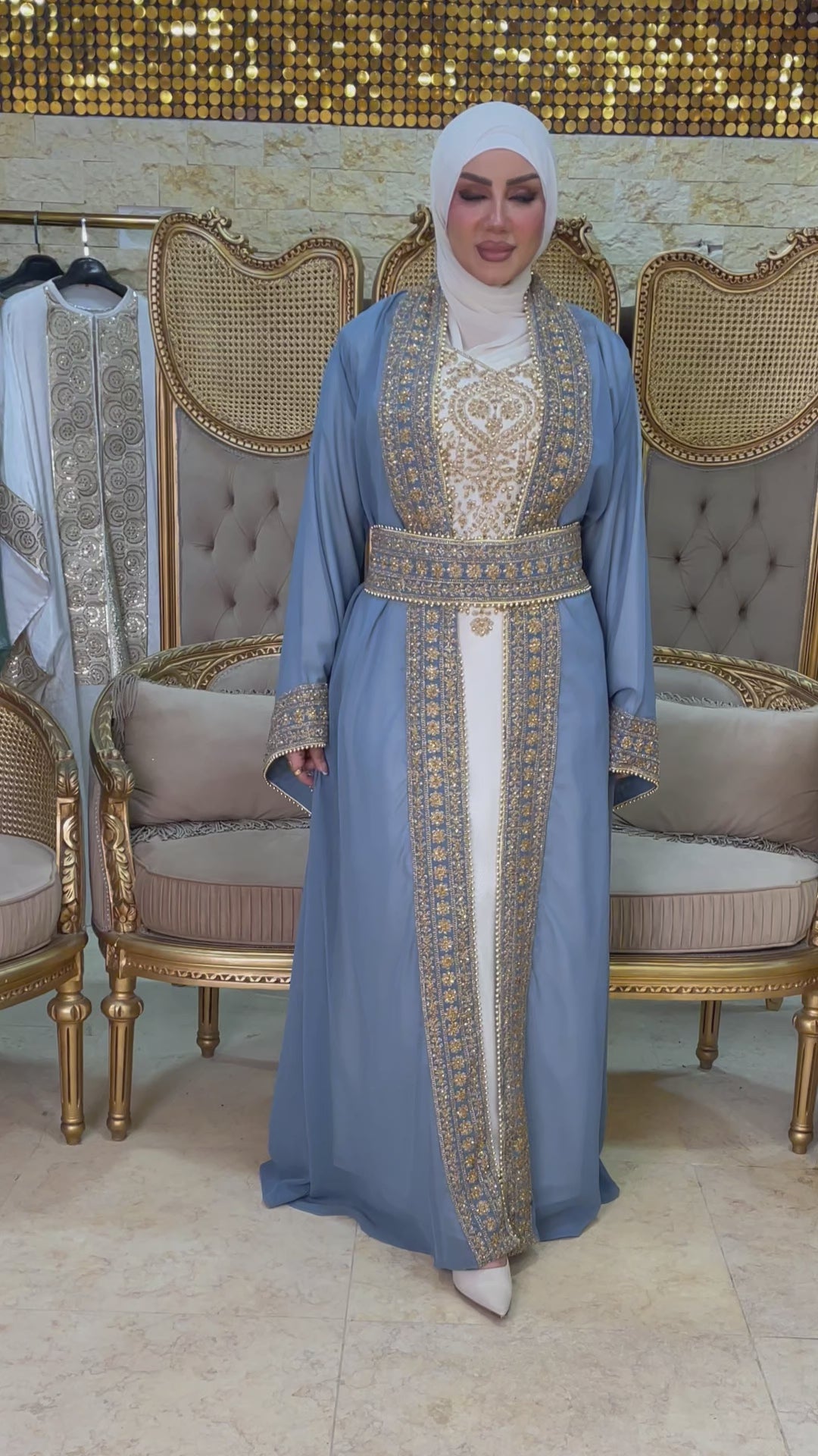 تكشيطة مغربية تطريز يدوي قطعتين و حزام فري سايز تناسب٦٠ ك إلى ٩٠ك